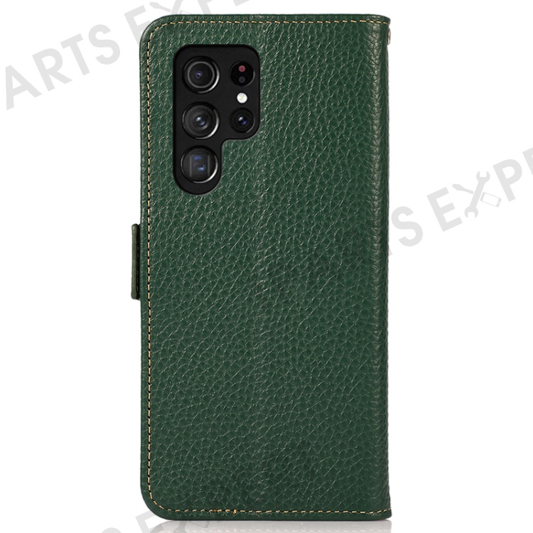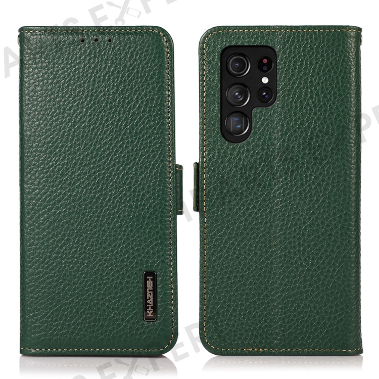 KHAZNEH For Samsung Galaxy S24 Ultra Phone Case Genuine Cow Leather Wallet Stand Cover - Green
