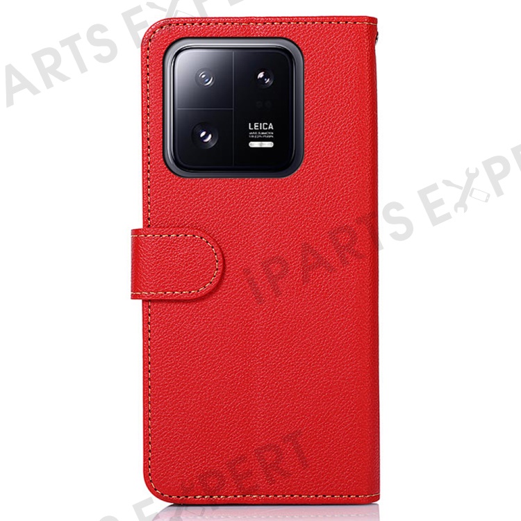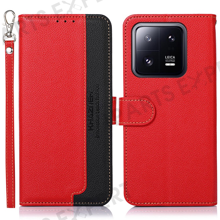 KHAZNEH For Xiaomi 13 Pro 5G Litchi Texture TPU+PU Leather Phone Case RFID Blocking Scratch Resistant Flip Stand Wallet Cover - Red