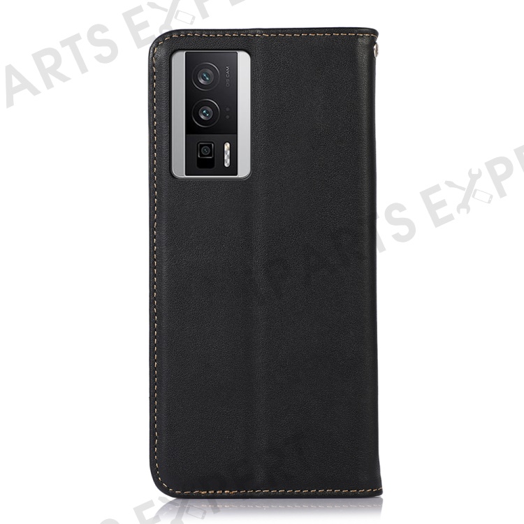 KHAZNEH For Xiaomi Poco F5 Pro 5G / Redmi K60 5G / K60 Pro 5G Genuine Cowhide Leather Wallet Phone Case RFID Blocking Stand Cover - Black