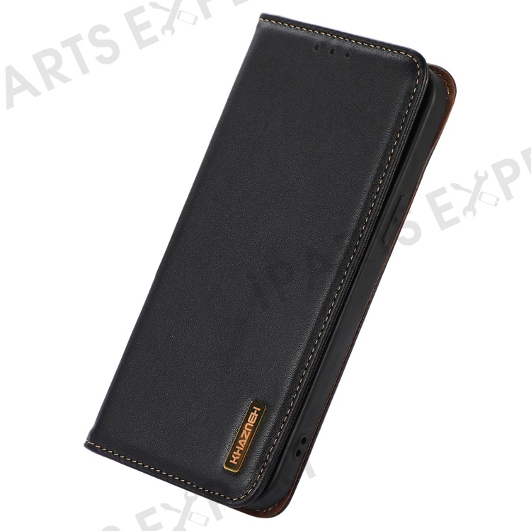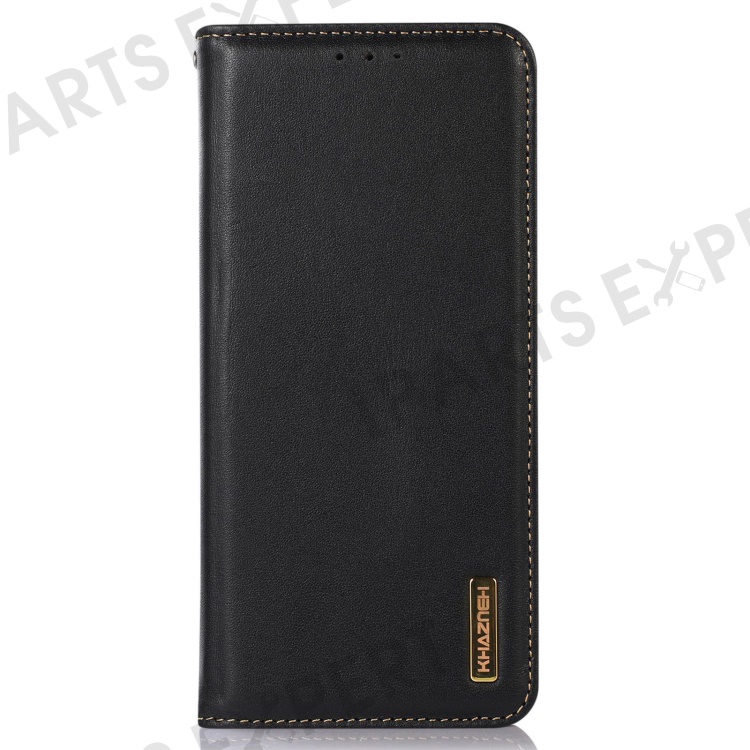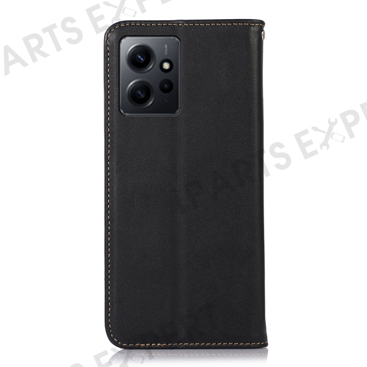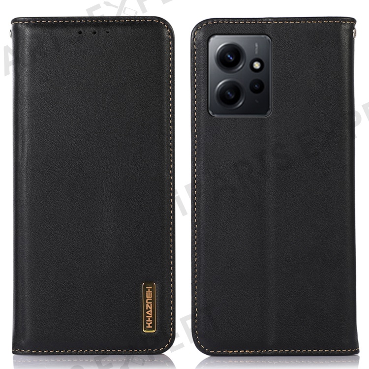 KHAZNEH for Xiaomi Redmi Note 12 4G Phone Case RFID Blocking Stand Wallet Genuine Cowhide Leather Cover - Black