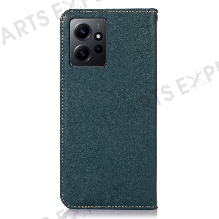 KHAZNEH for Xiaomi Redmi Note 12 4G Phone Case RFID Blocking Stand Wallet Genuine Cowhide Leather Cover - Green