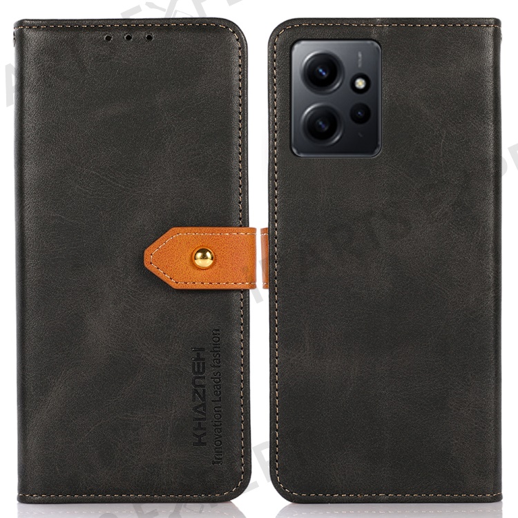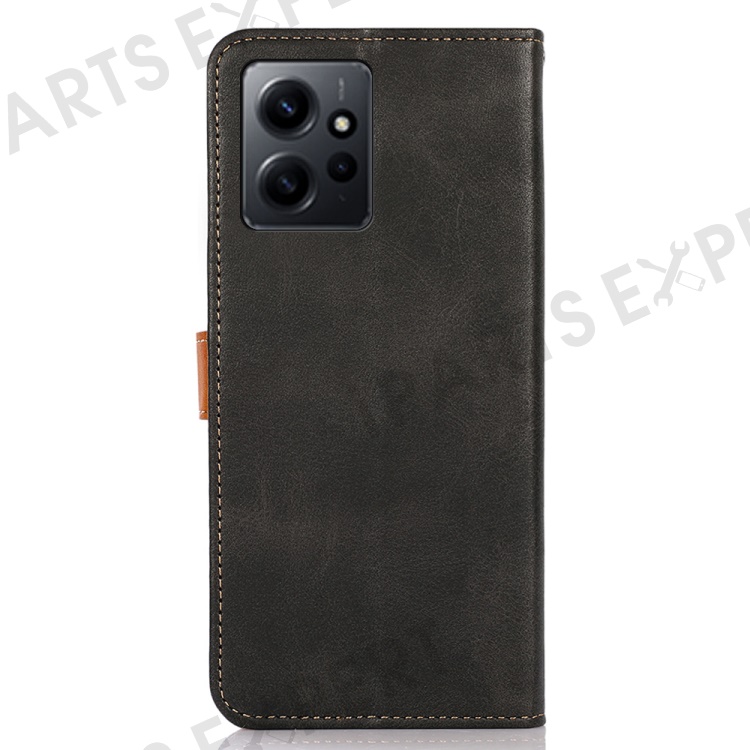 KHAZNEH For Xiaomi Redmi Note 12 4G PU Leather Cowhide Texture Phone Case Wallet Stand Phone Cover - Black