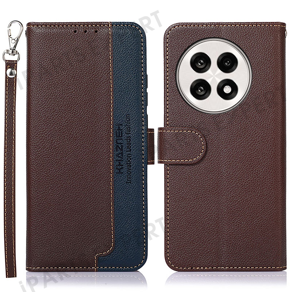 KHAZNEH Phone Case For OnePlus 13R 5G / Ace 5 5G / Ace 5 Pro 5G RFID Blocking Wallet PU Leather Cover - Brown
