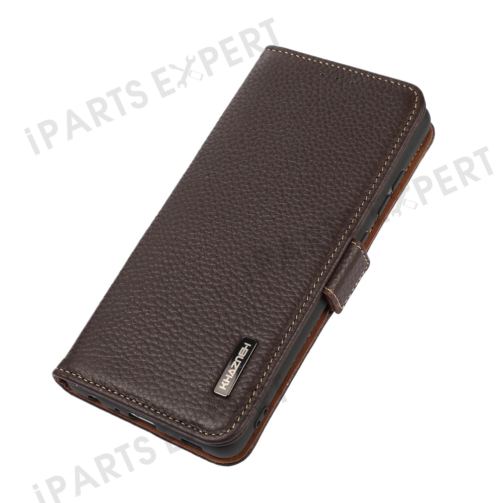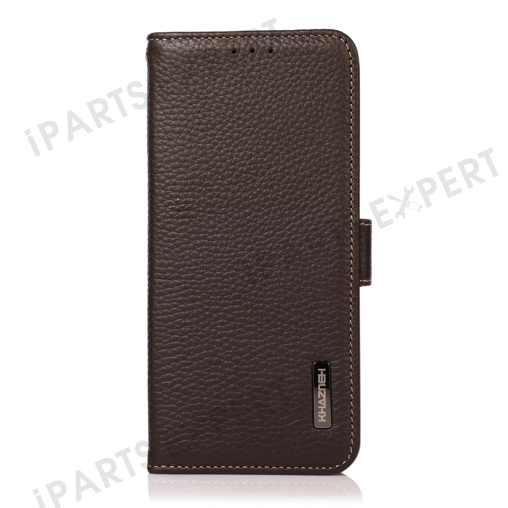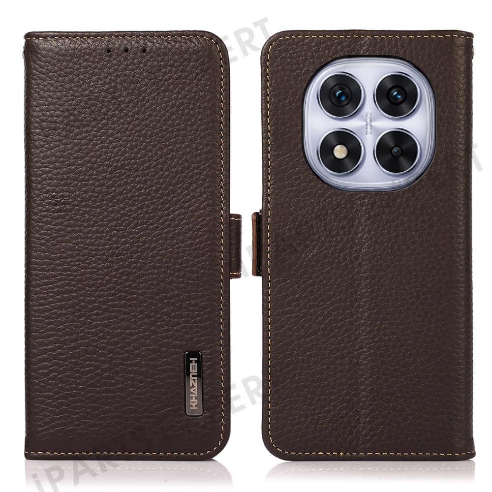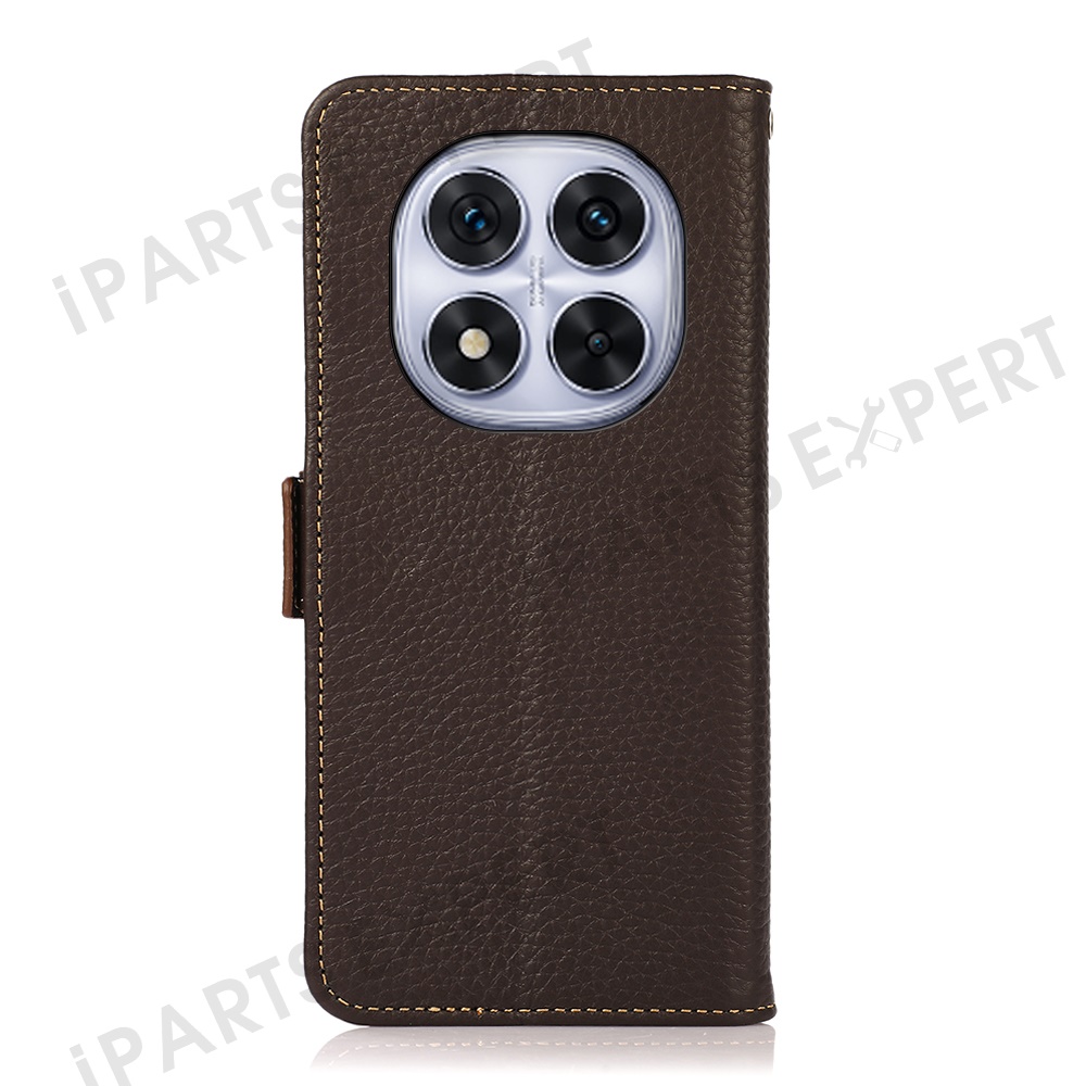 KHAZNEH Phone Case for Xiaomi Redmi Note 14 Pro 5G / Poco X7 5G Genuine Cow Leather Cover RFID Blocking - Brown