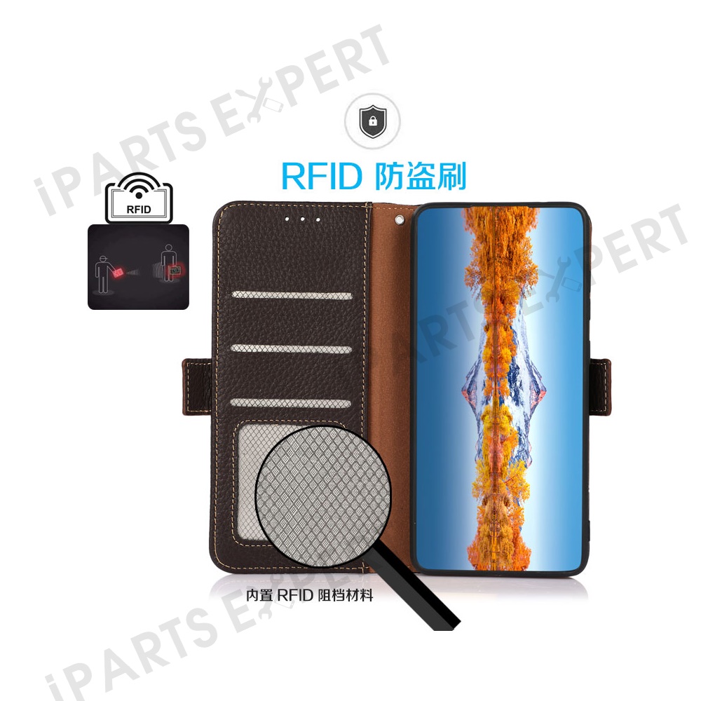 - 【Elegant Litchi Texture Genuine Cow Leather】Crafted from premium litchi texture genuine cow leather, this case offers a sleek and chic outlook, adding a touch of sophistication to your phone
