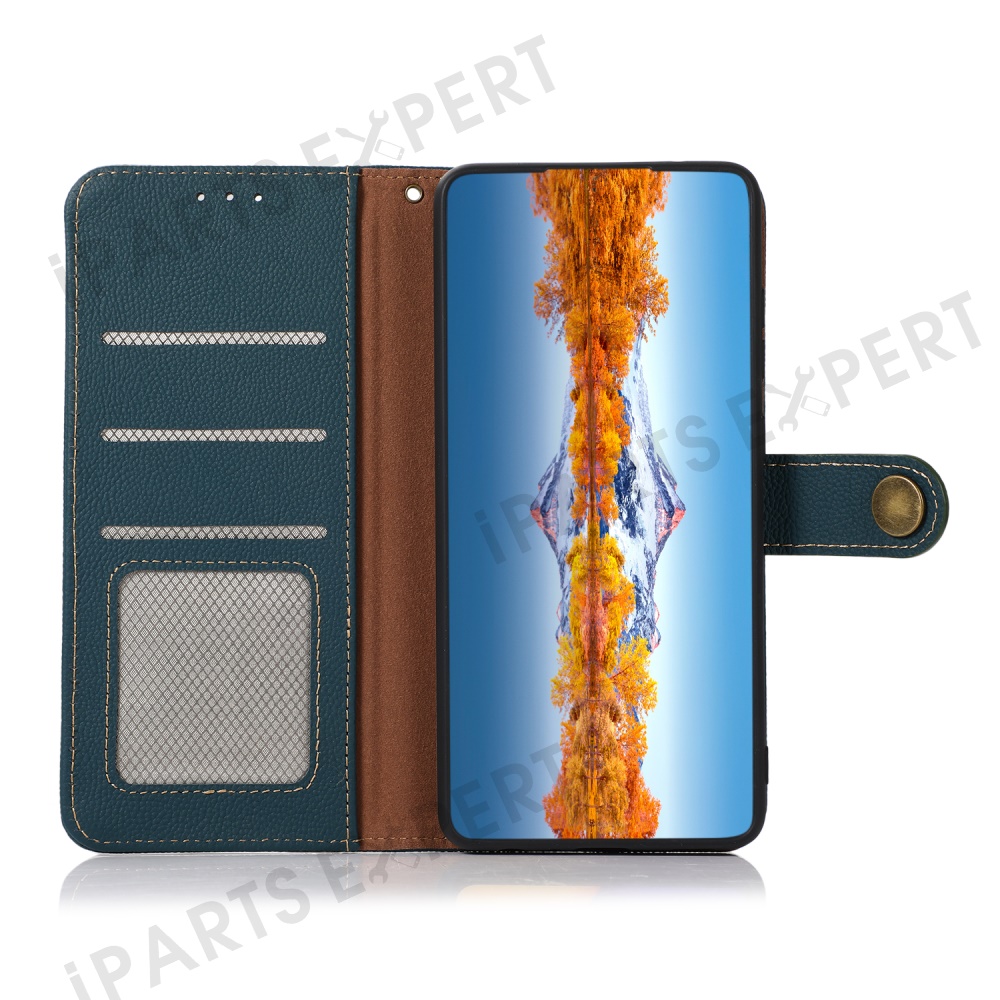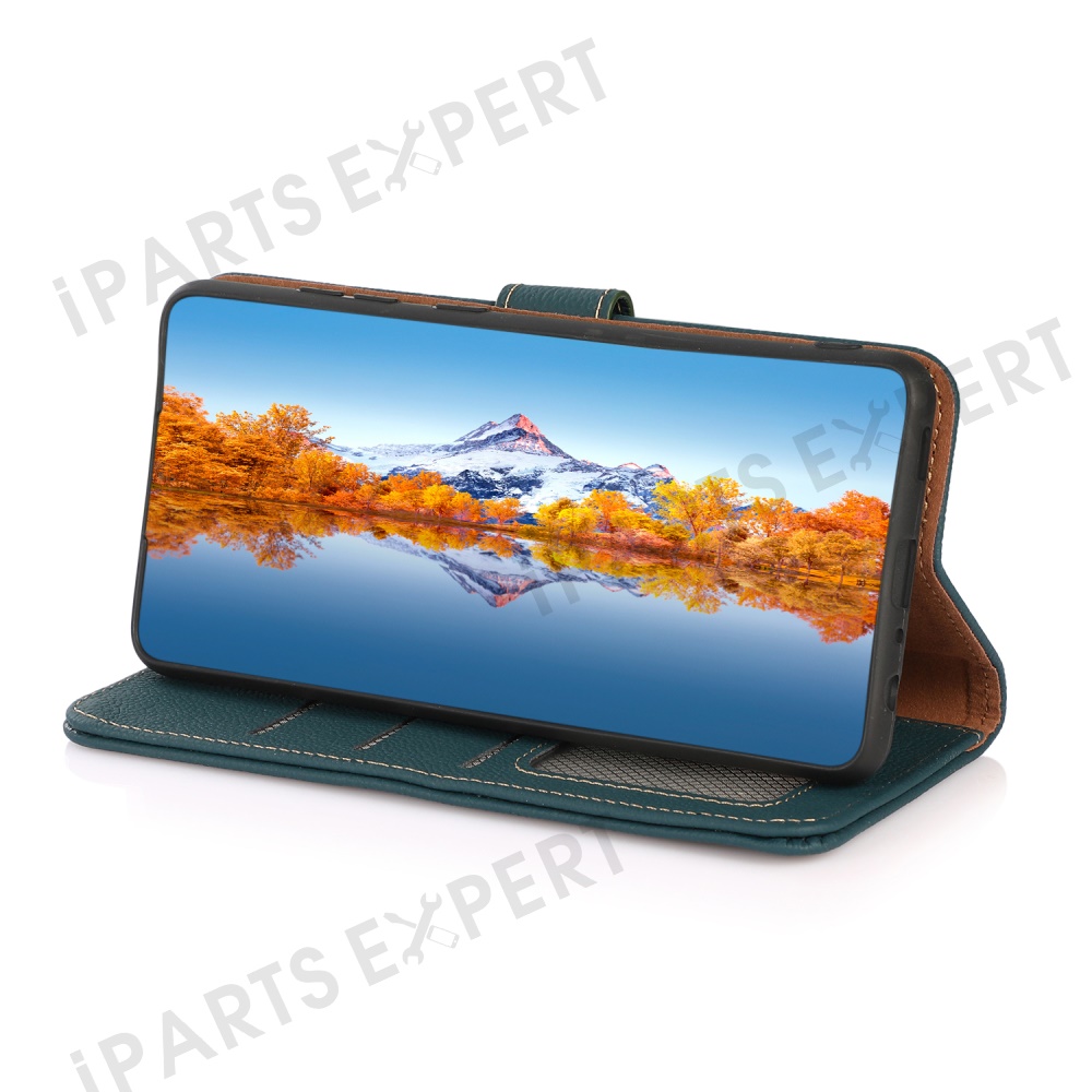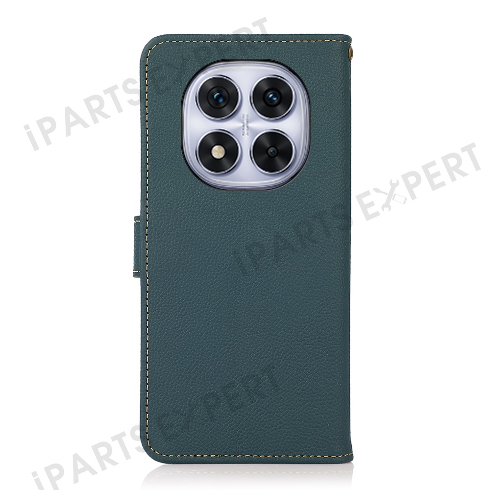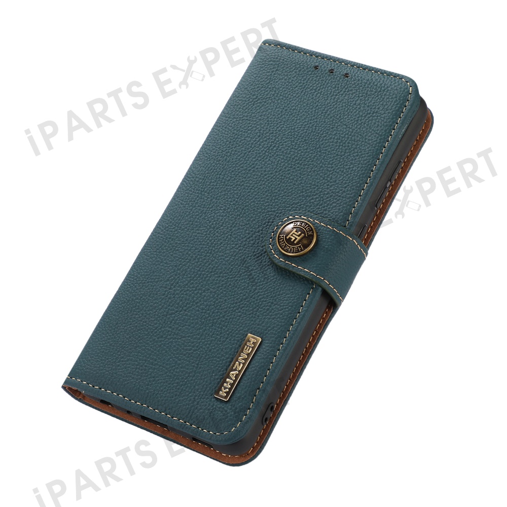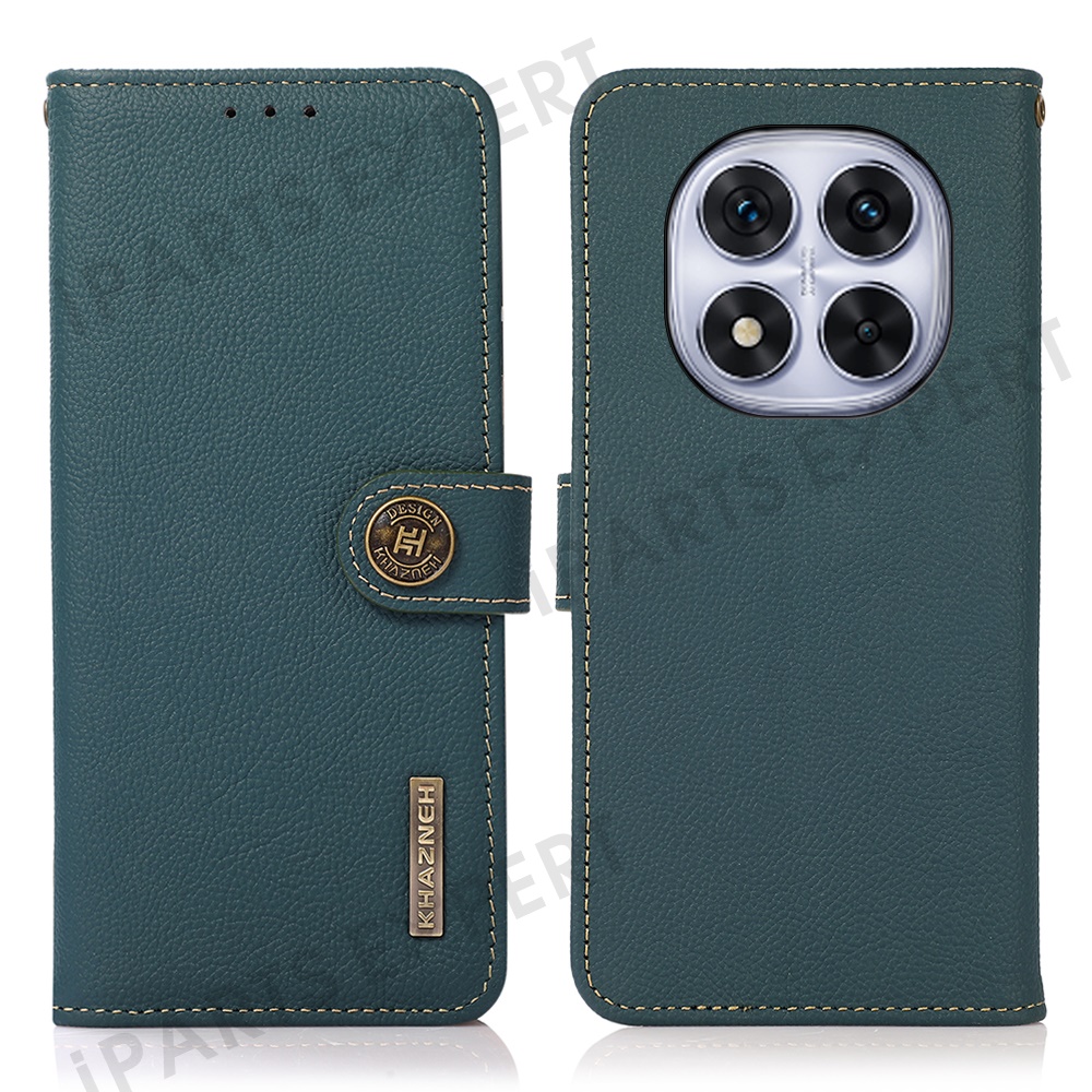 KHAZNEH Wallet Case for Xiaomi Redmi Note 14 Pro 5G / Poco X7 5G Genuine Cow Leather Phone Cover - Green