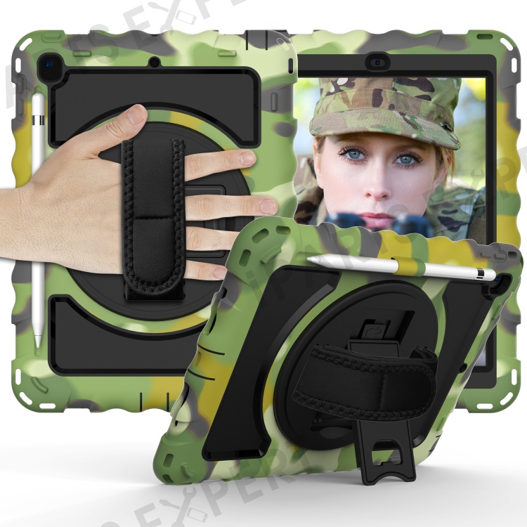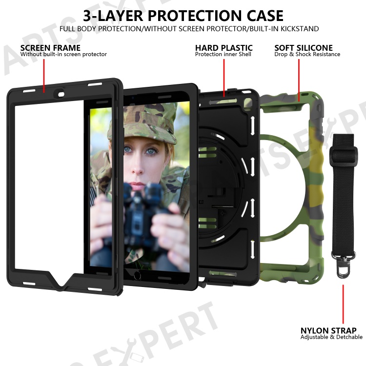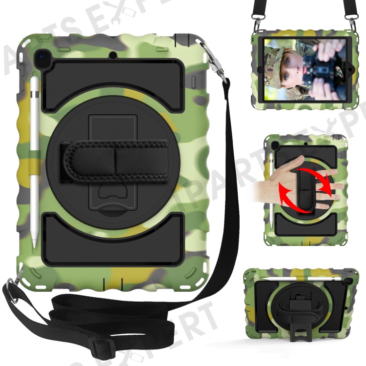 Kickstand Case for iPad Pro 9.7 inch (2016) / iPad 9.7-inch (2017) / (2018) / iPad Air 2 Silicone+PC Tablet Cover with Shoulder Strap - Camouflage