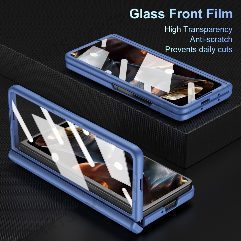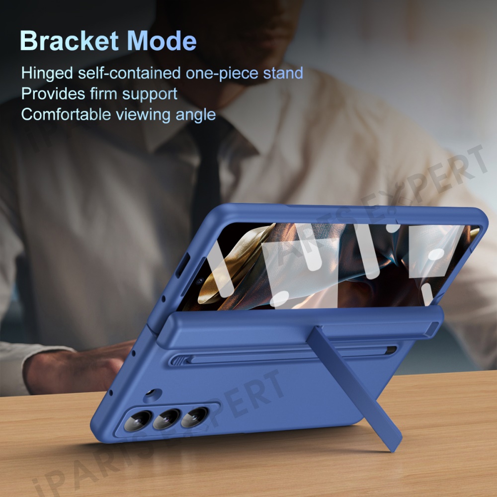 Kickstand Phone Case for Samsung Galaxy Z Fold Special / Z Fold 6 Slim / W25 PC Back Cover with Stylus and Tempered Glass Film - Sapphire