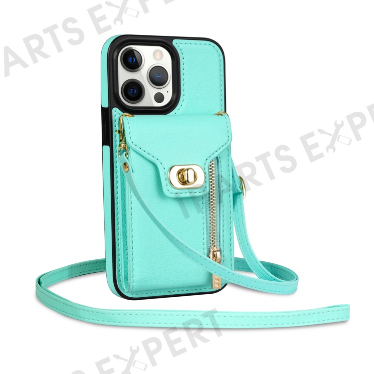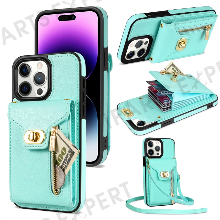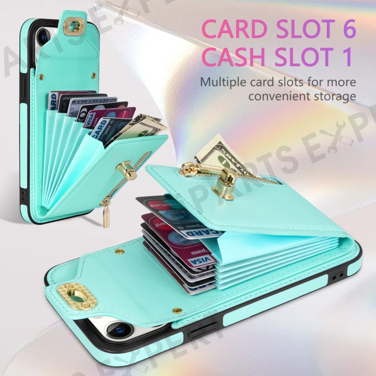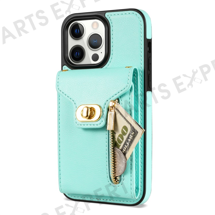 Kickstand PU Leather Coated TPU Case for iPhone 15 Pro , Zipper Pocket Card Slots Phone Cover - Green
