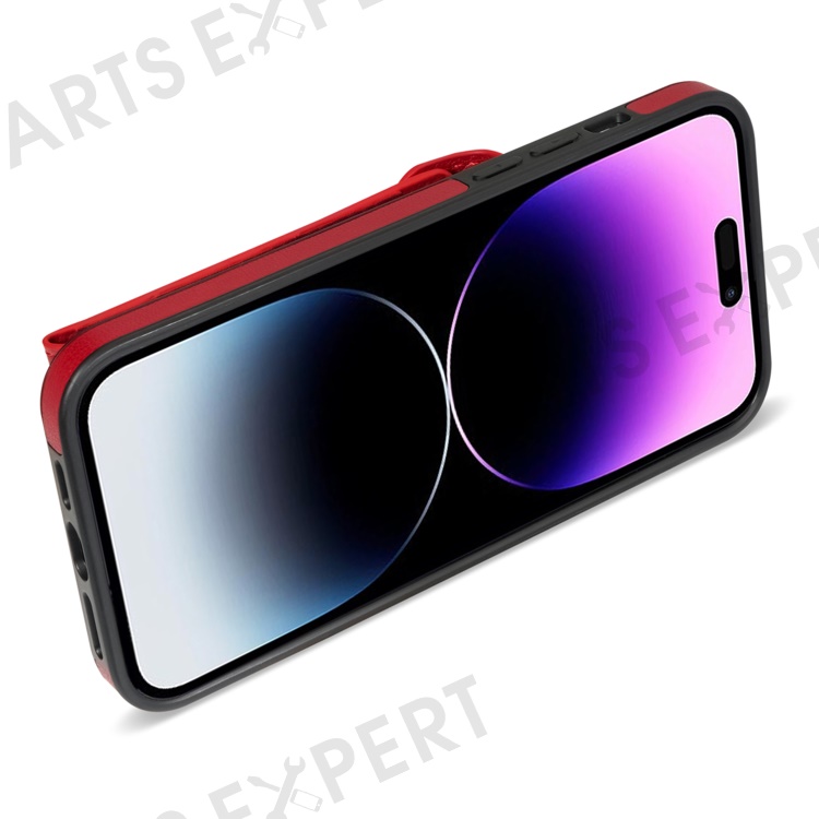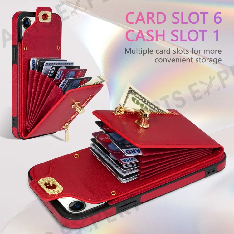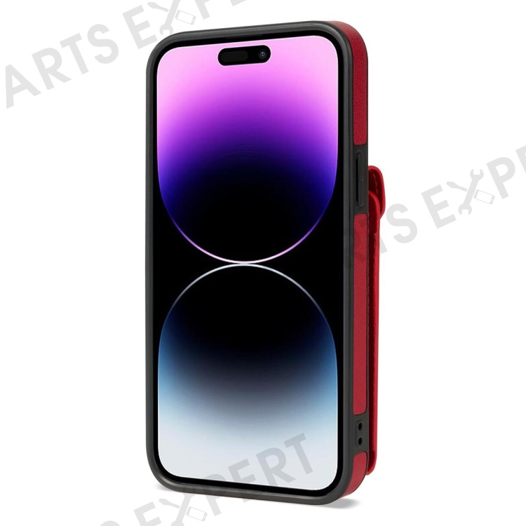 Kickstand PU Leather Coated TPU Case for iPhone 15 Pro , Zipper Pocket Card Slots Phone Cover - Red
