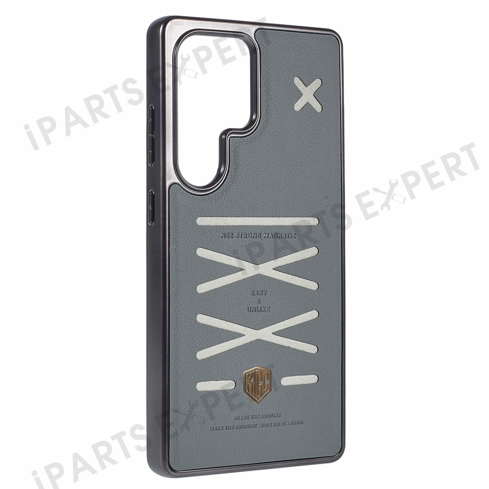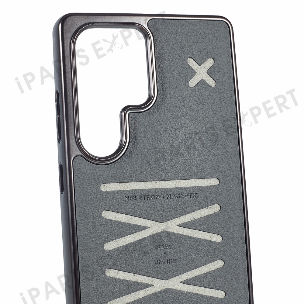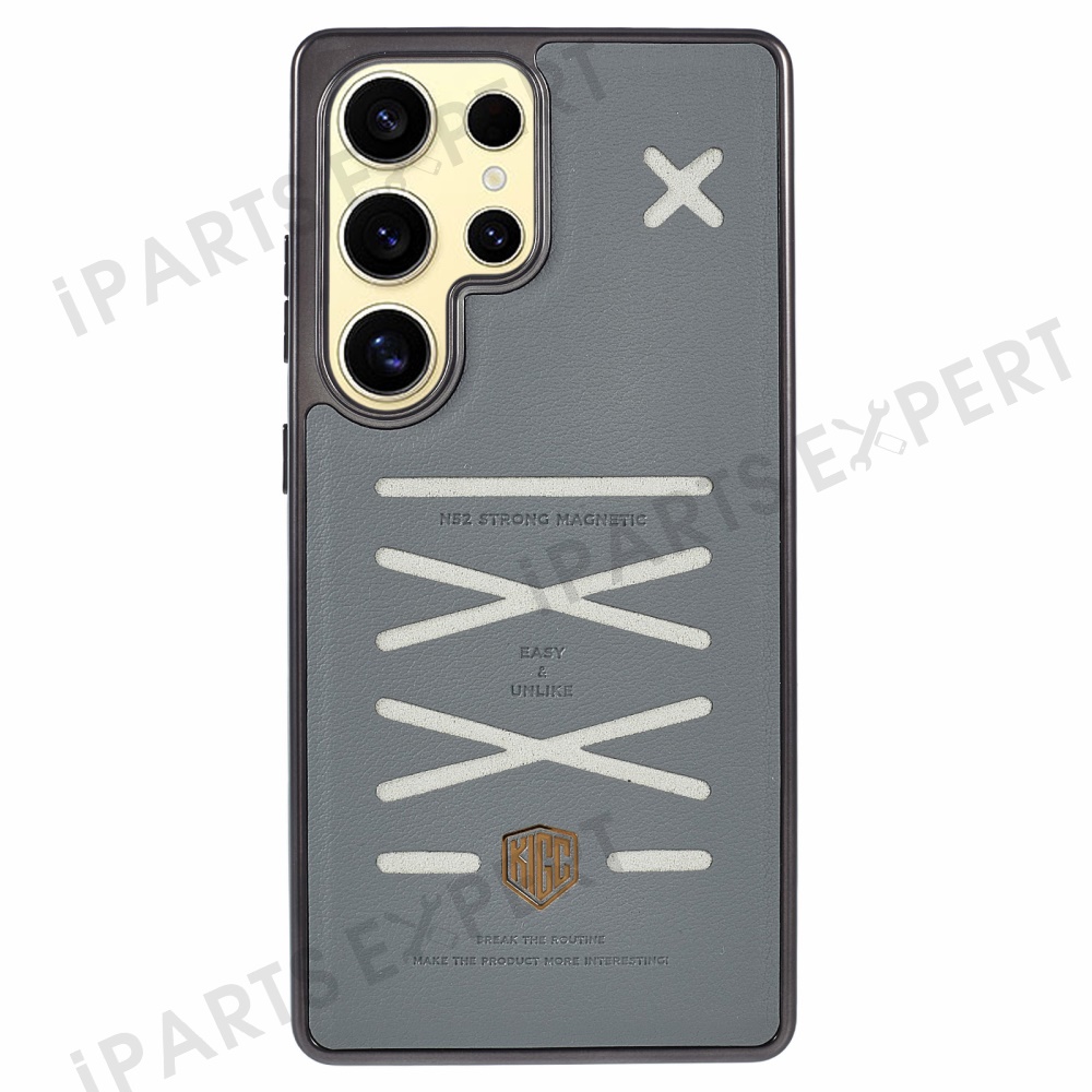 KIGC For Samsung Galaxy S25 Ultra Magnetic Case Hybrid Phone Back Cover Cross Line Design - Grey