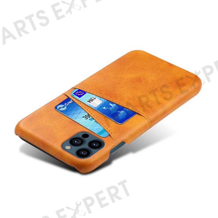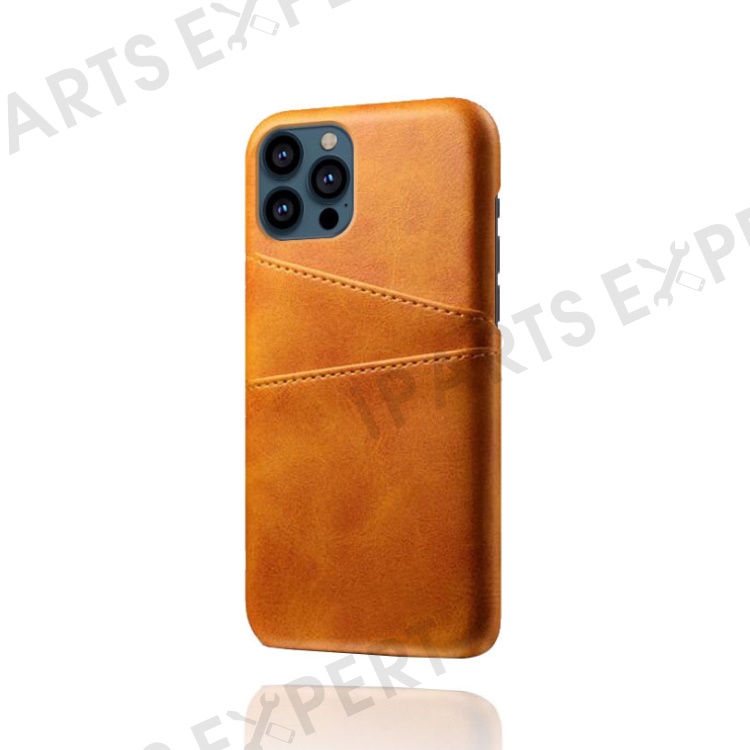 KSQ Dual Card Slots PU Leather Coated PC Phone Case Shell for iPhone 13 Pro Max 6.7 inch - Orange