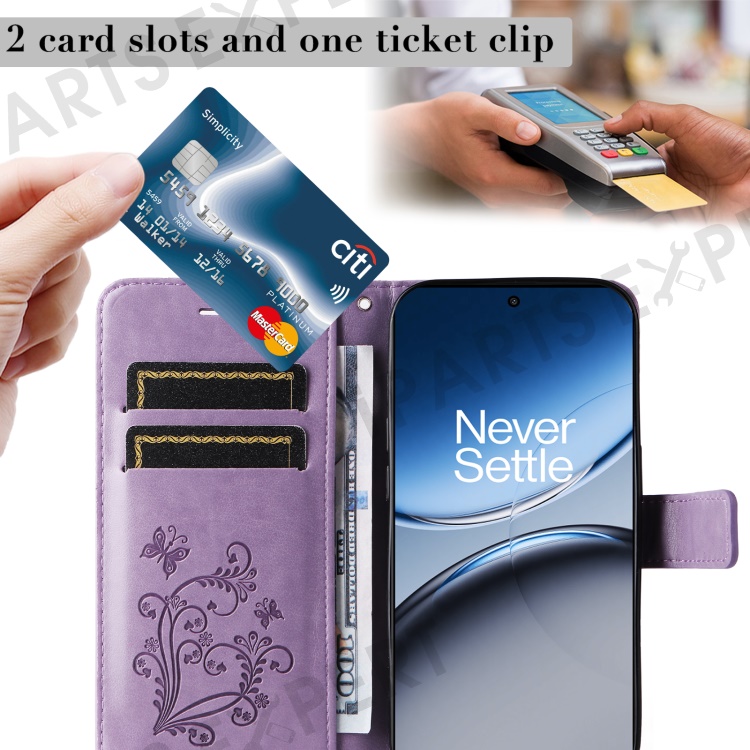 For OnePlus Nord 4 Wallet Case Floral Butterfly Imprinted Leather Phone Cover Stand - Light Purple
