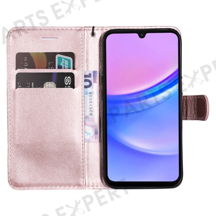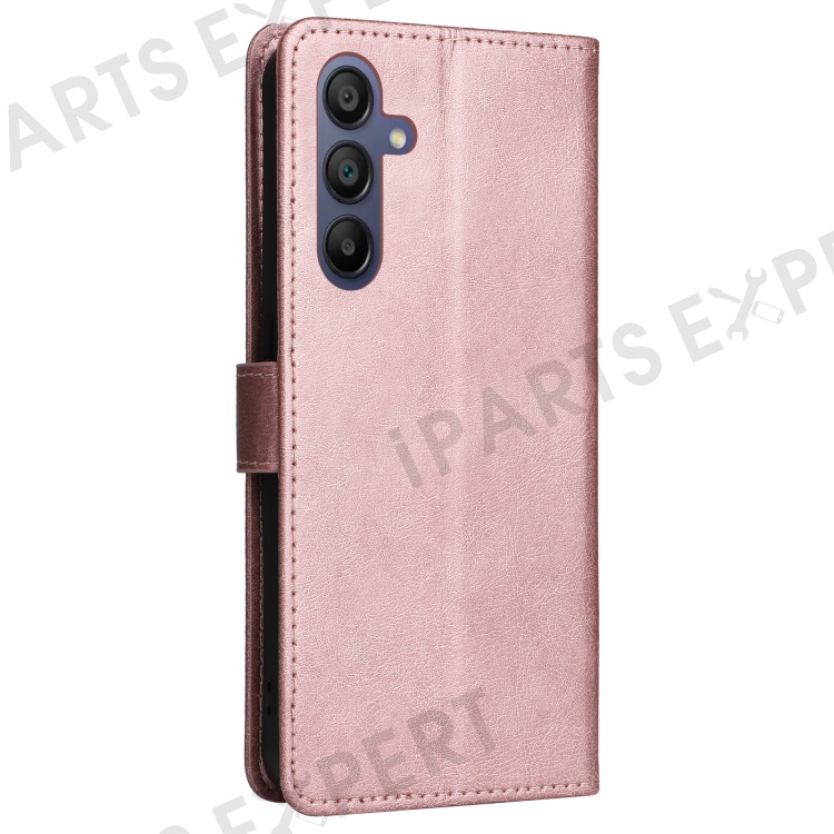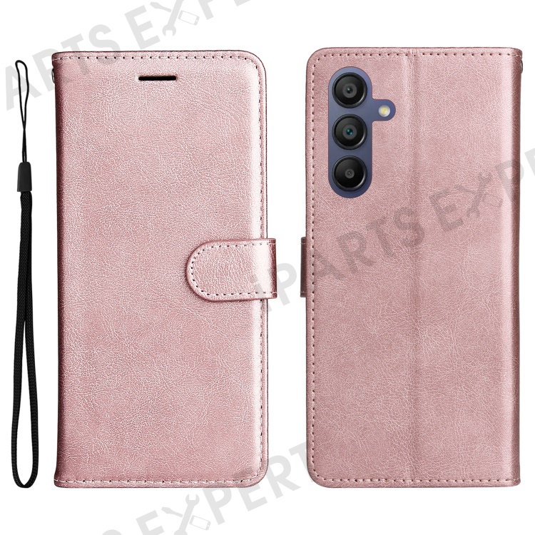 For Samsung Galaxy A17 5G / A17 4G / A26 5G / A16 5G / A16 4G Case Solid Color Leather Mobile Cover Wallet Stand with Strap - Rose Gold