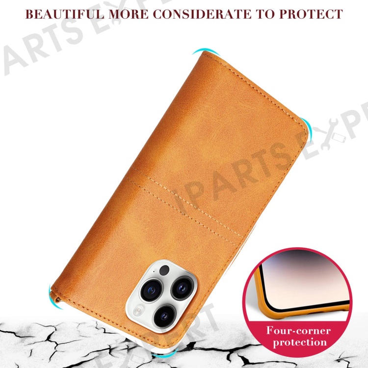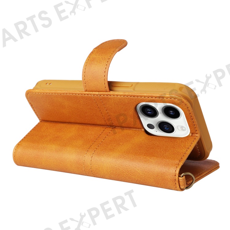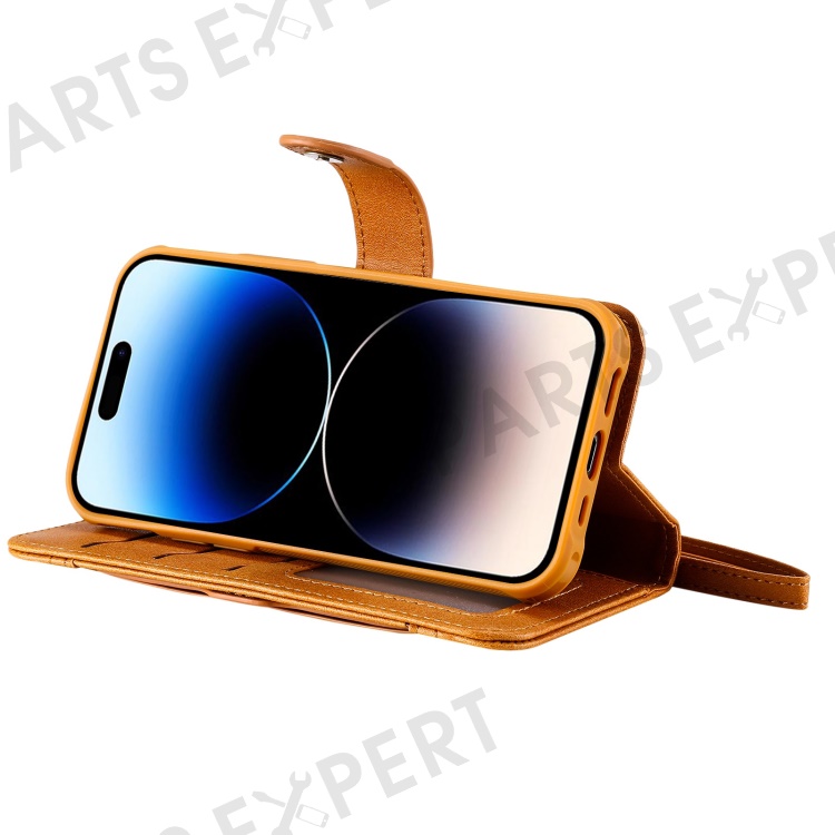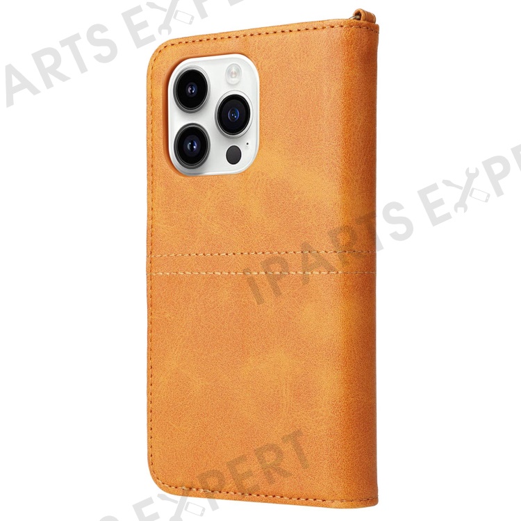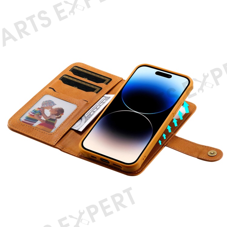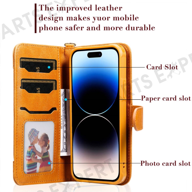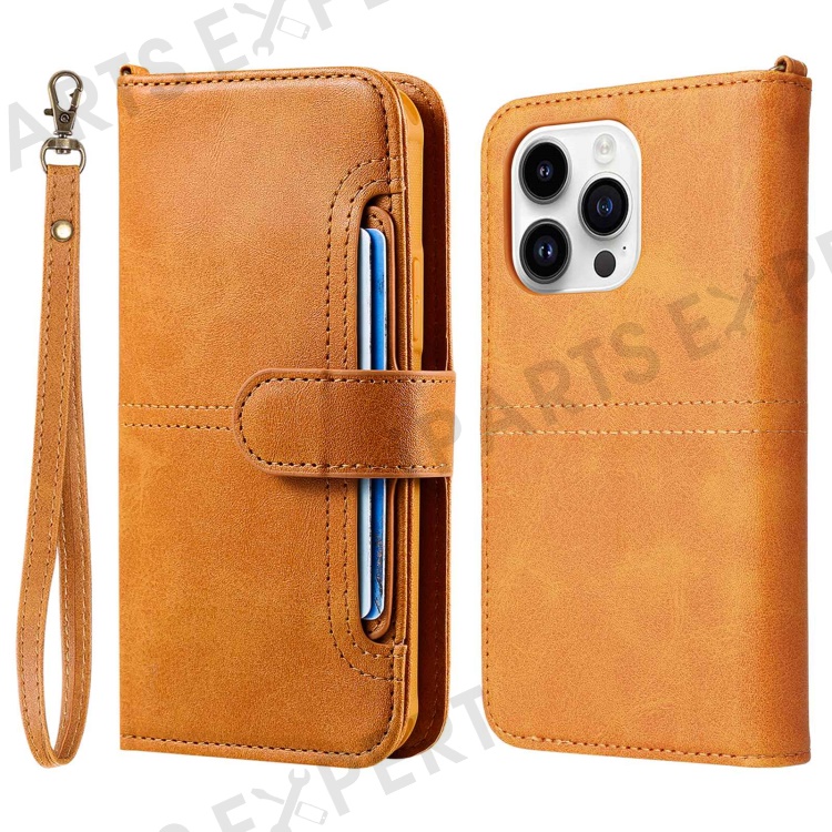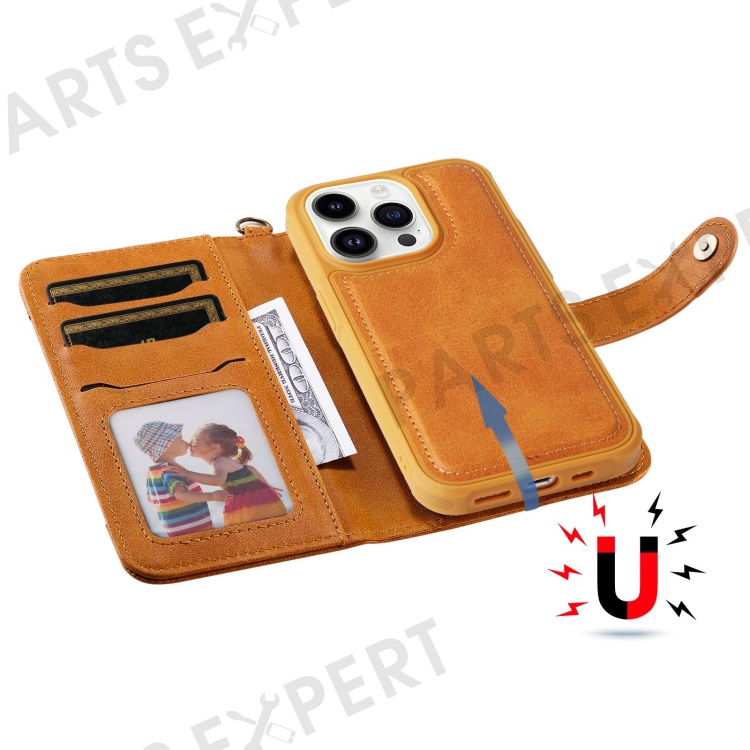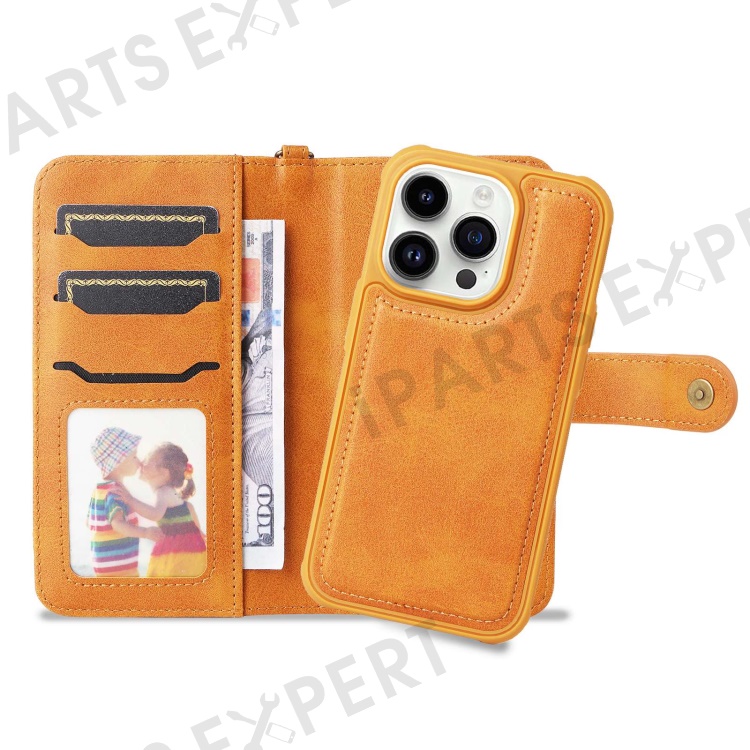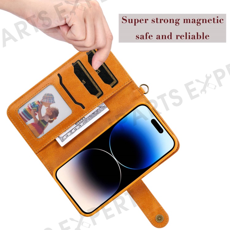 For iPhone 14 Pro Leather Case with Detachable Wallet and Strap Cell Phone Cover - Orange