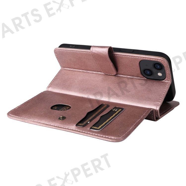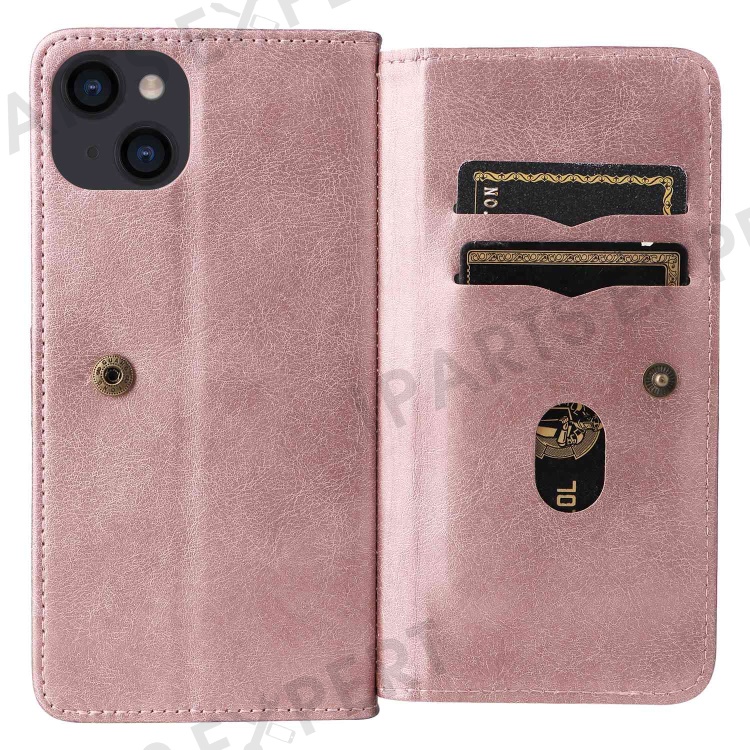 KT Multi-functional Series-1 for iPhone 14 Plus 6.7 inch PU Leather Wallet Case Stand Full Protection Magnetic Phone Cover with 10 Card Slots - Rose Gold