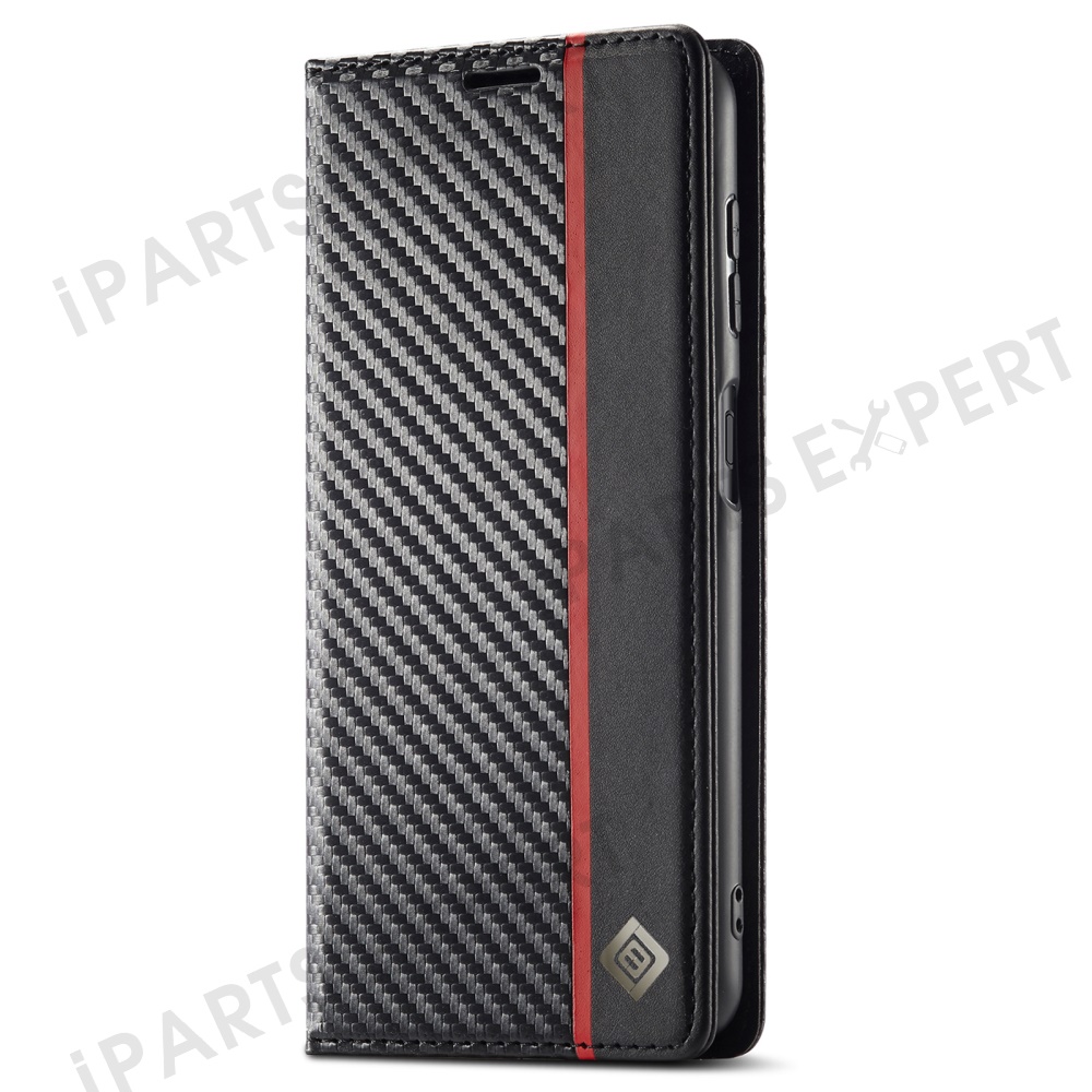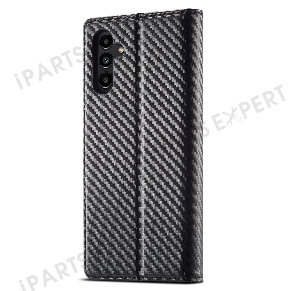 LC.IMEEKE For Samsung Galaxy A36 5G Case Carbon Fiber Texture Phone Cover Stand Card Holder - Vertical Stripe