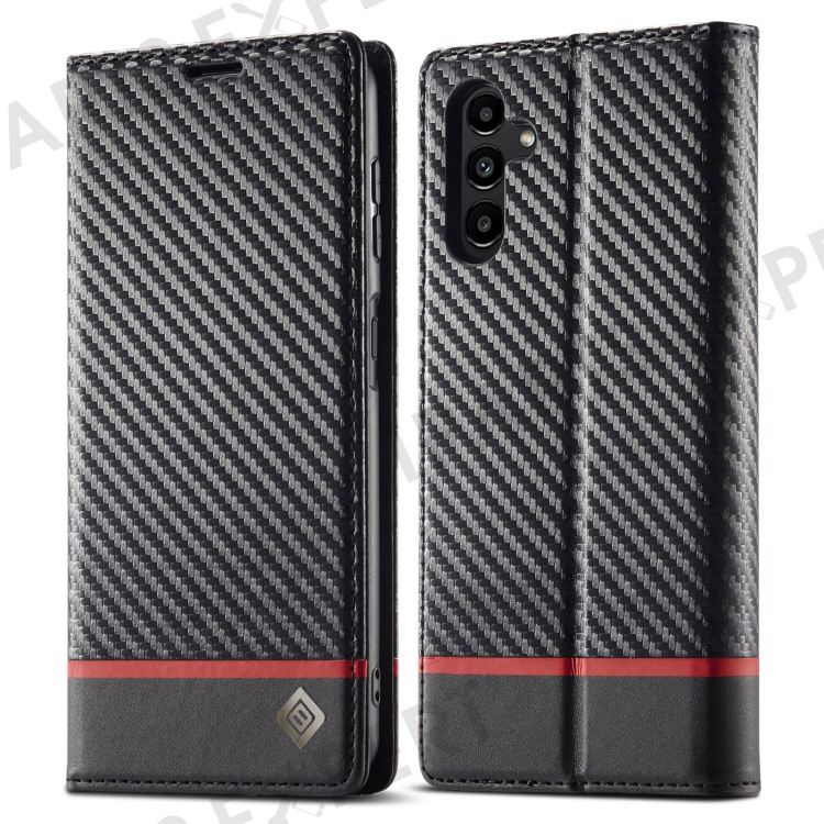 LC.IMEEKE For Samsung Galaxy S25 Case Carbon Fiber Texture Phone Cover Stand Card Holder - Horizontal Stripe