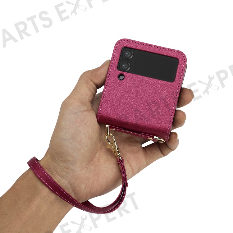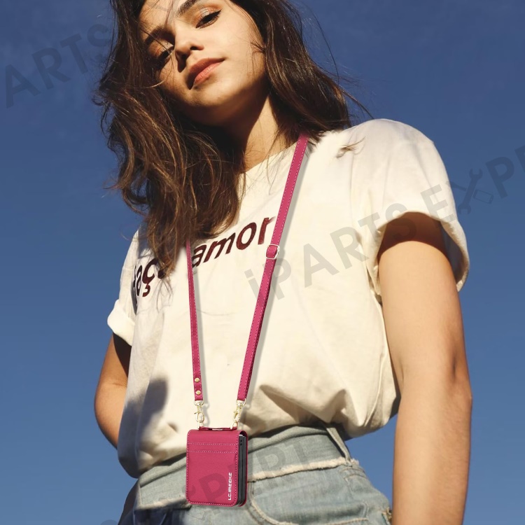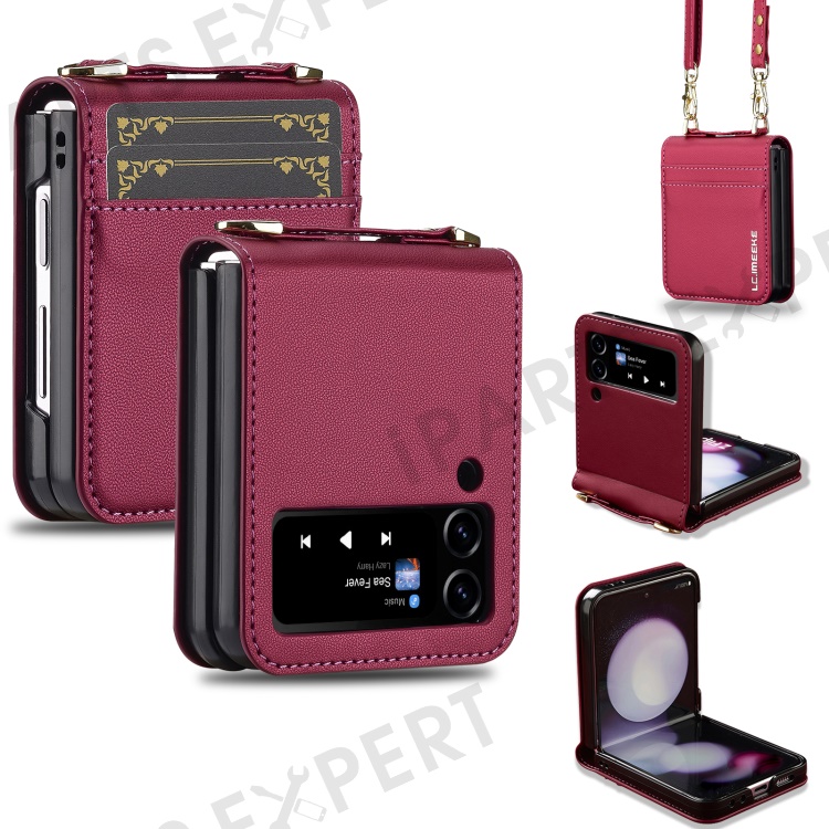 LC.IMEEKE for Samsung Galaxy Z Flip4 5G Case Leather+PC Phone Cover with Straps Card Slots - Red