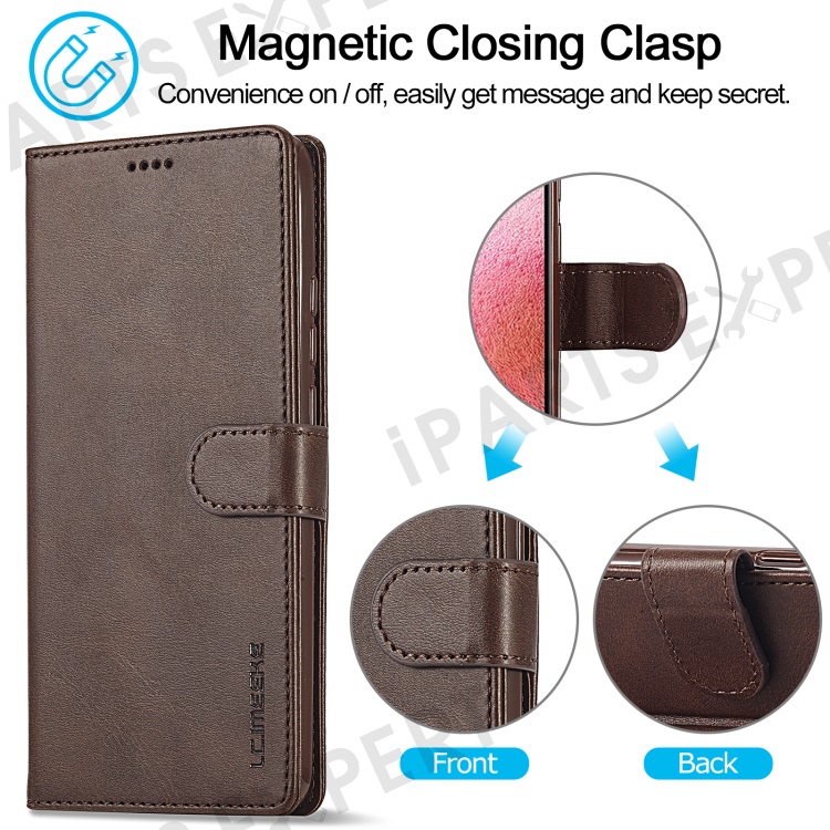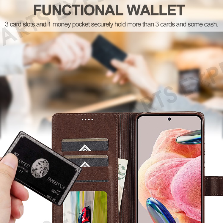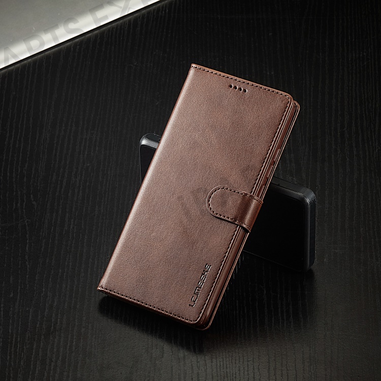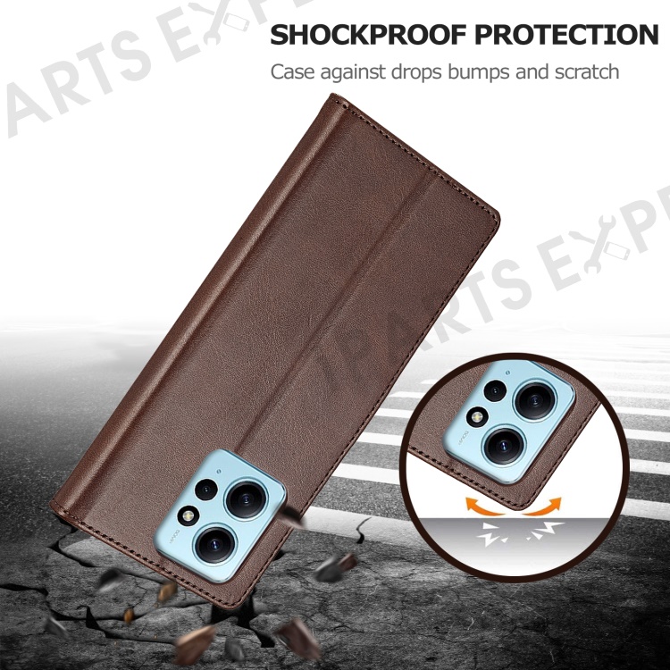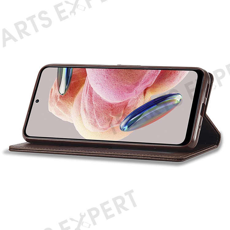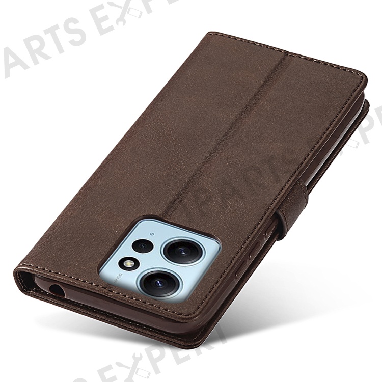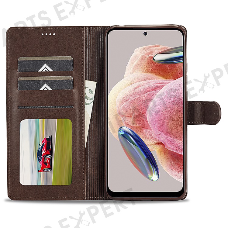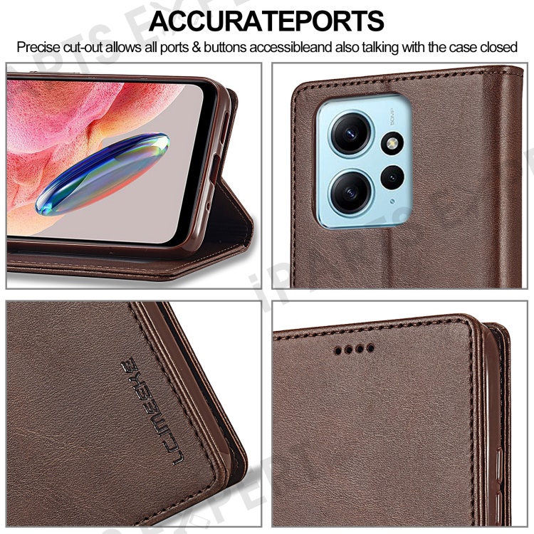 LC.IMEEKE For Xiaomi Redmi Note 12 4G Phone Wallet Case Calf Texture PU Leather Stand Phone Cover - Brown