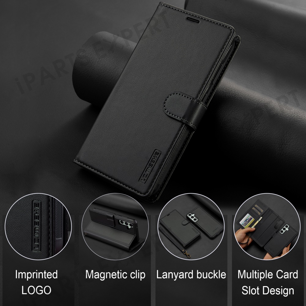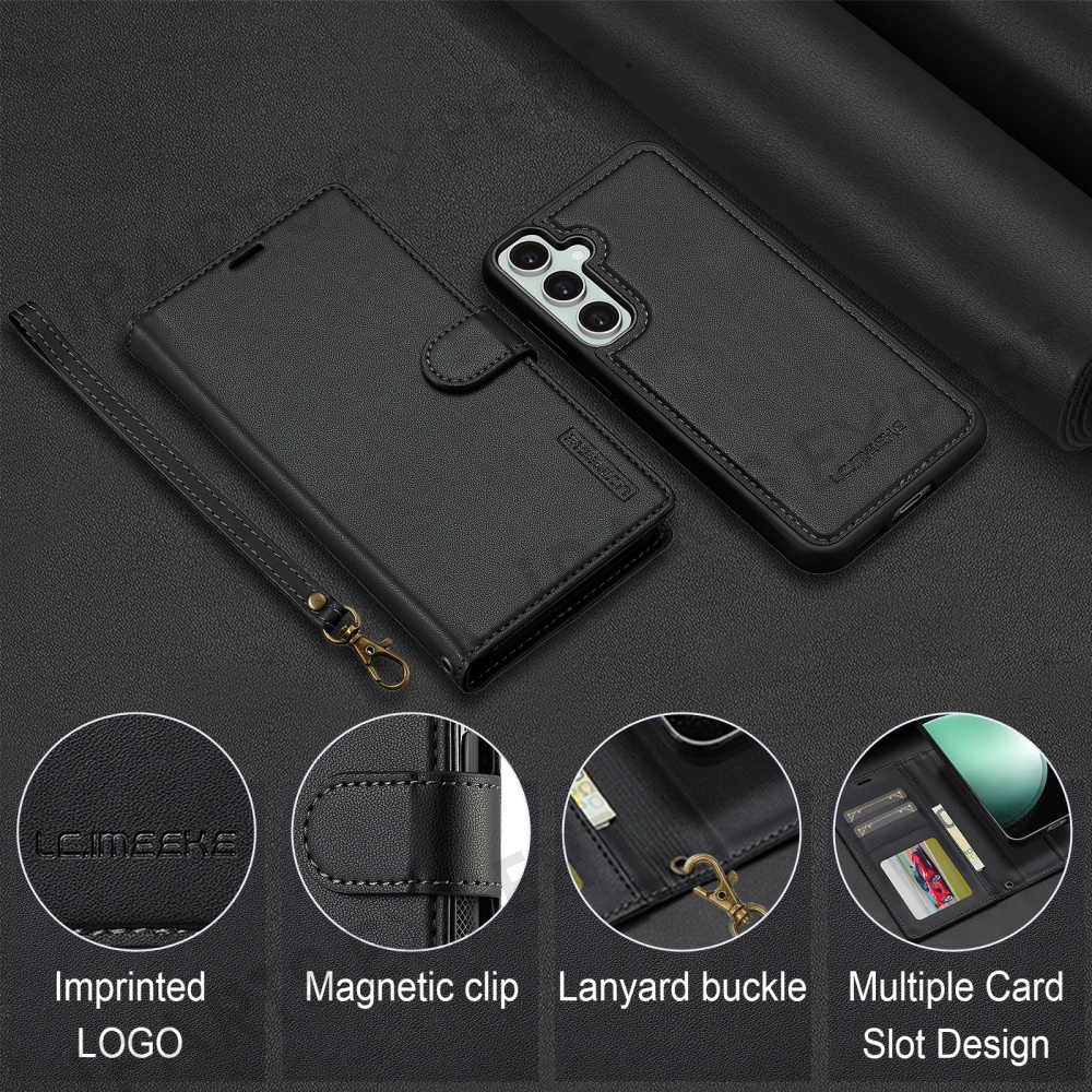 LC.IMEEKE L2 Series for Samsung Galaxy A36 5G Case PU Leather Wallet Detachable Magnetic Phone Cover - Black