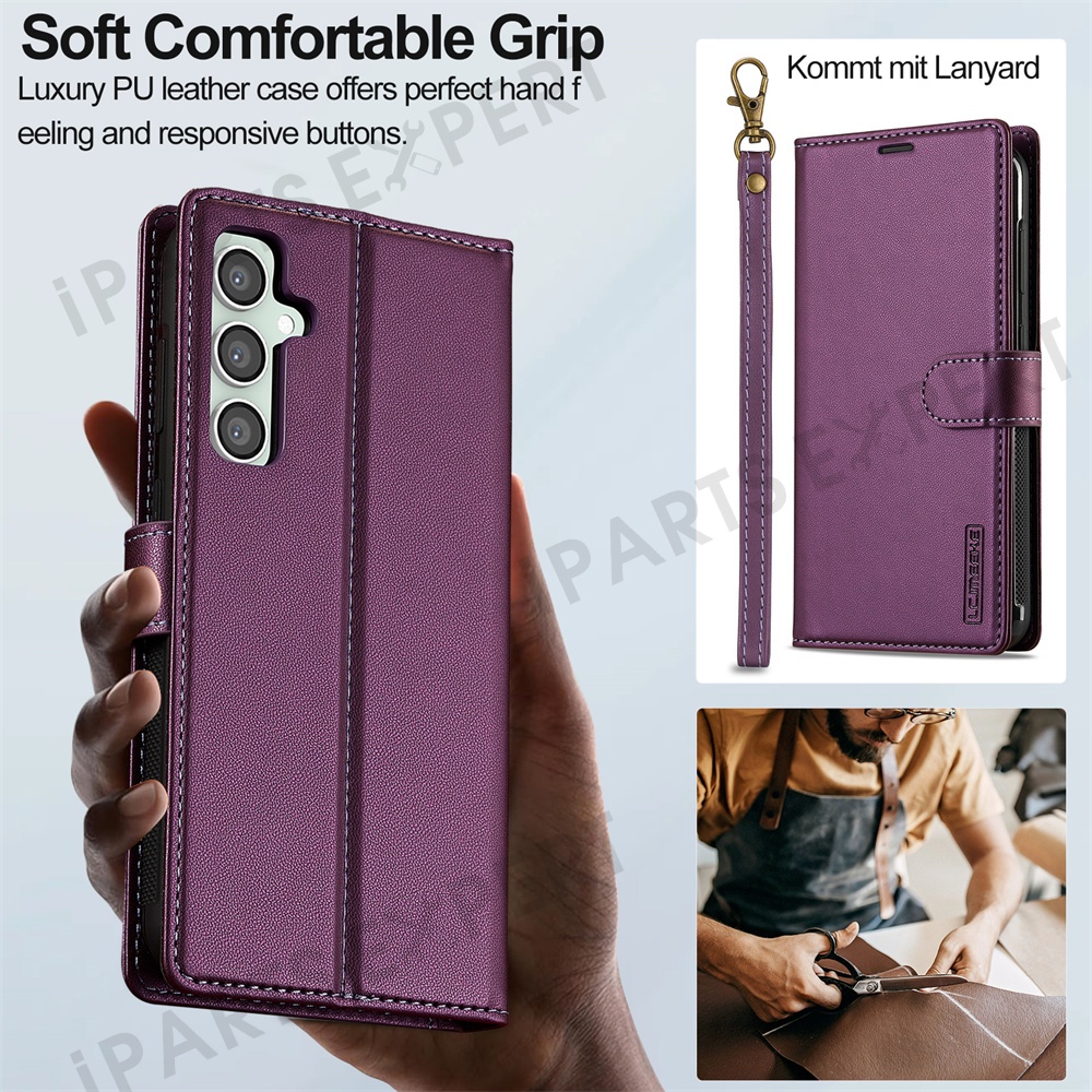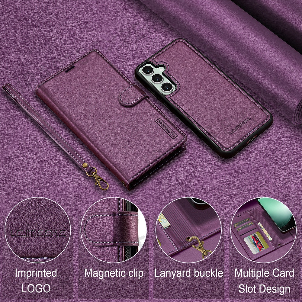 LC.IMEEKE L2 Series for Samsung Galaxy A36 5G Case PU Leather Wallet Detachable Magnetic Phone Cover - Purple