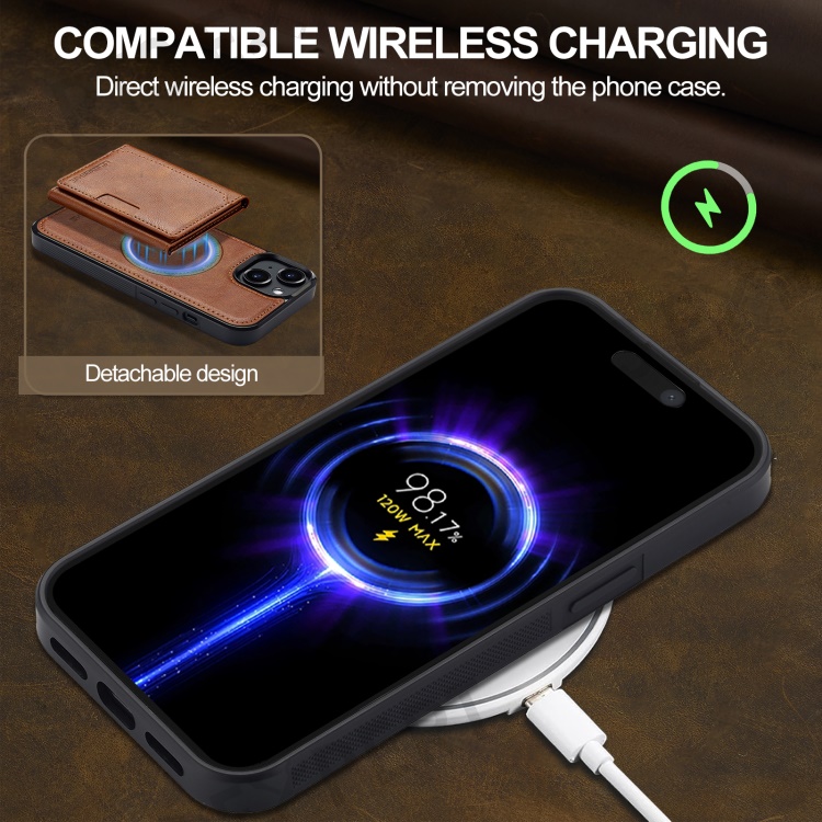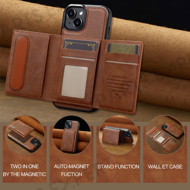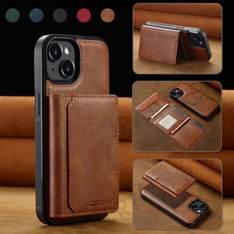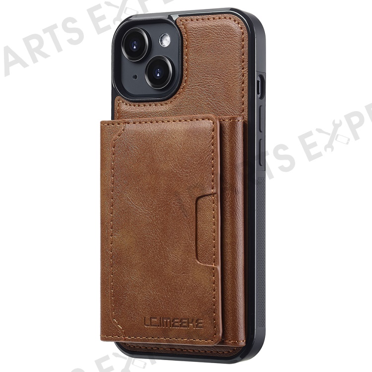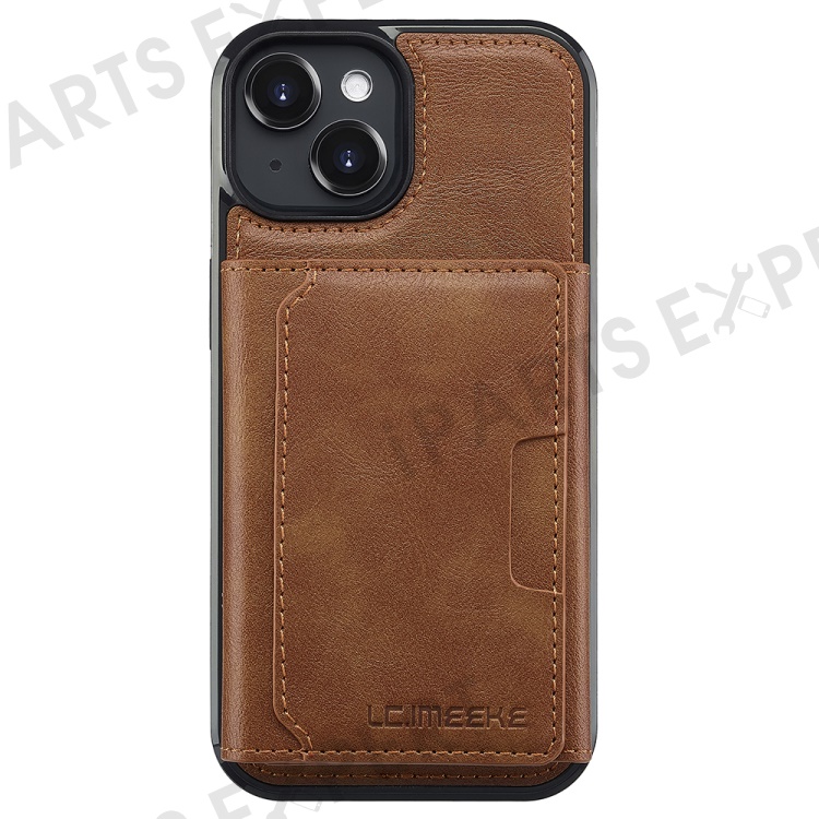 LC.IMEEKE L5 For iPhone 14 Magnetic Phone Case Leather Back Cover with Detachable Card Holder - Brown