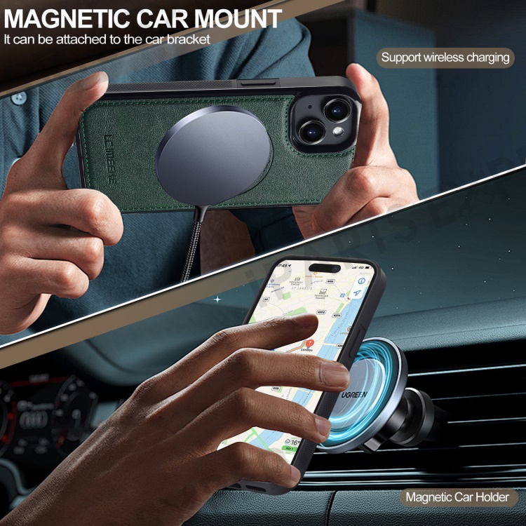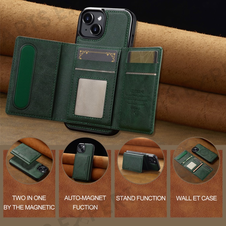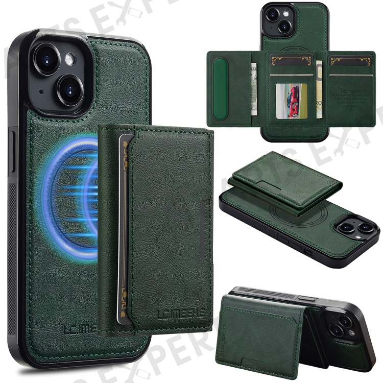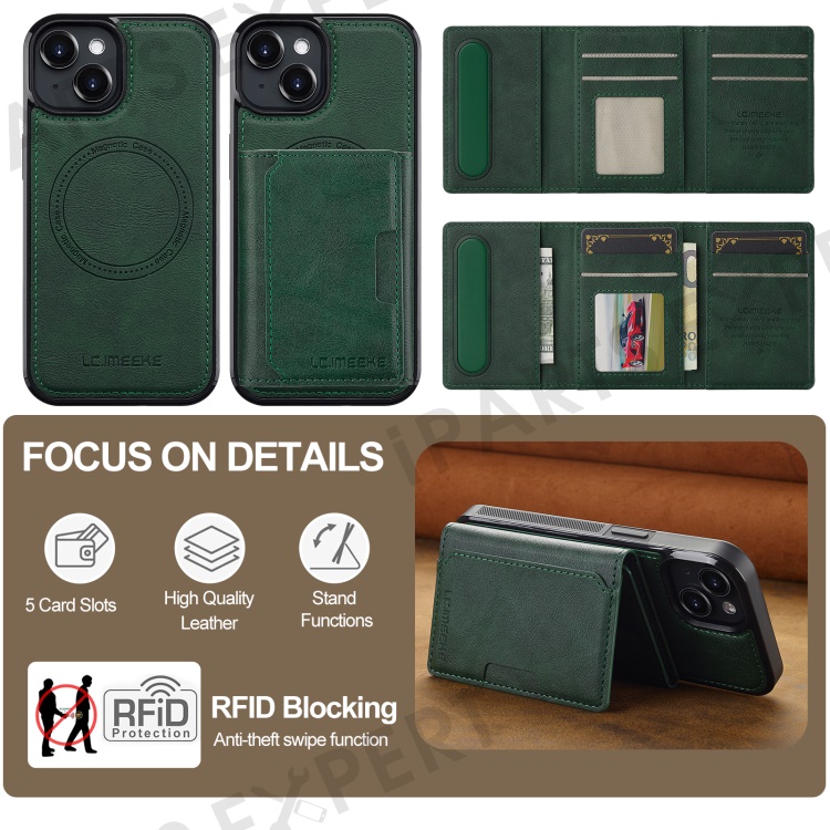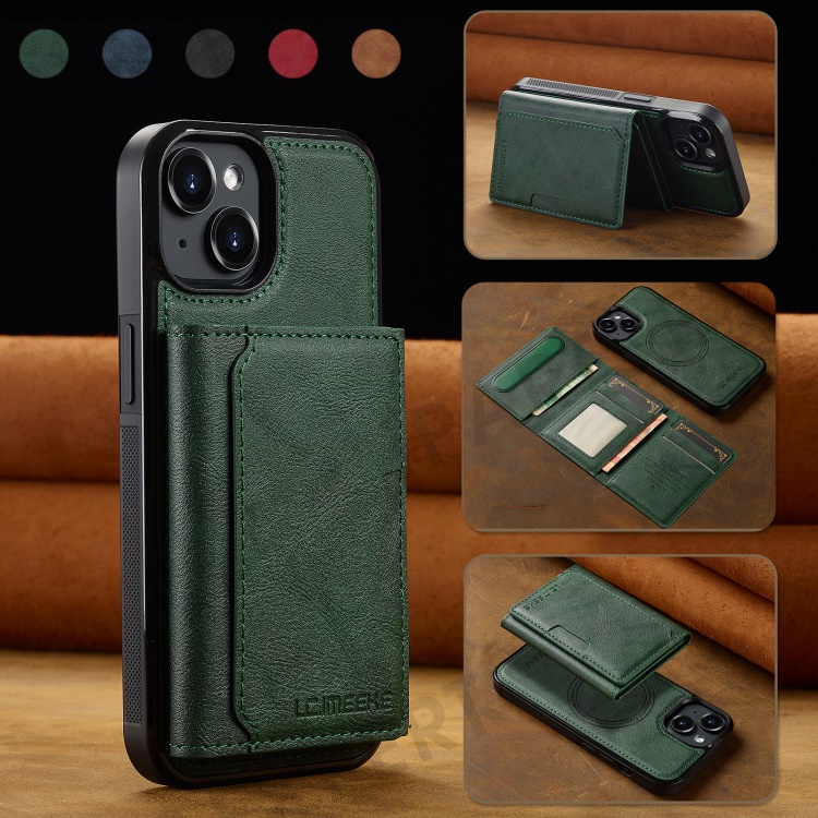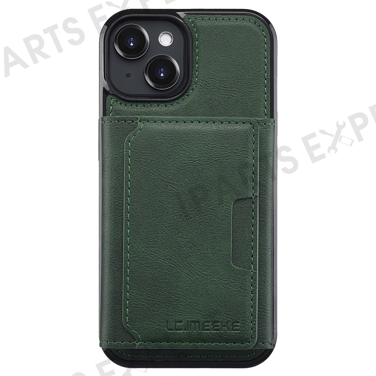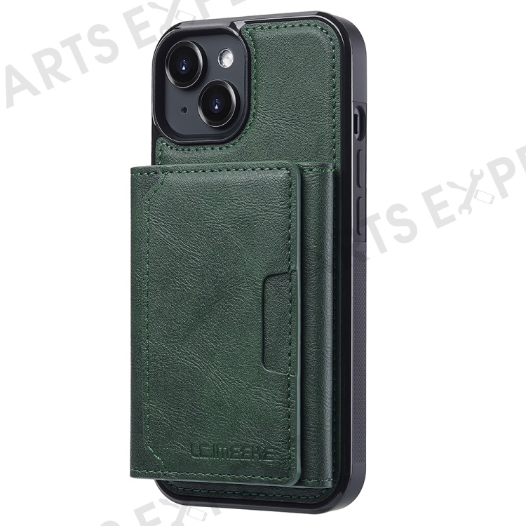 LC.IMEEKE L5 For iPhone 14 Magnetic Phone Case Leather Back Cover with Detachable Card Holder - Green