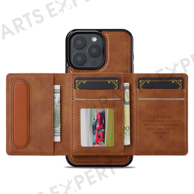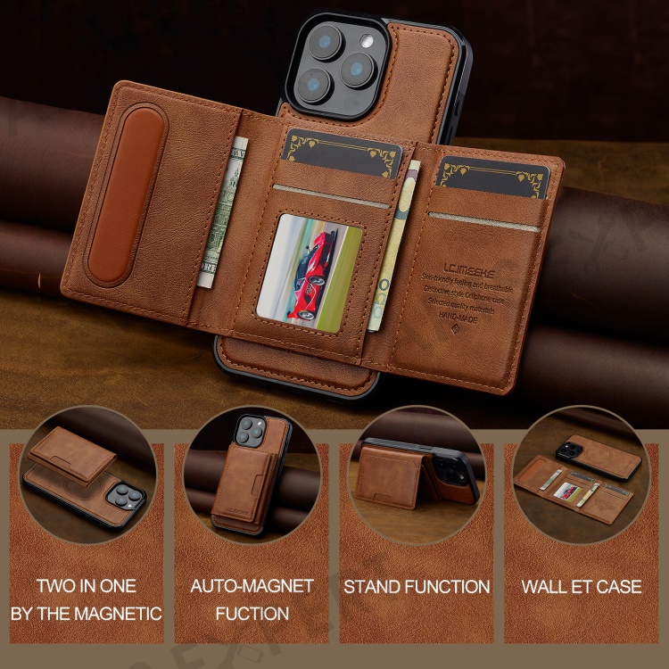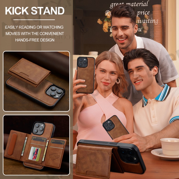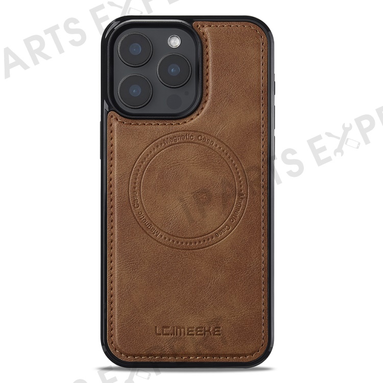 LC.IMEEKE L5 For iPhone 15 Pro Magnetic Phone Case Leather Back Cover with Detachable Card Holder - Brown