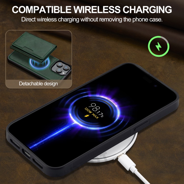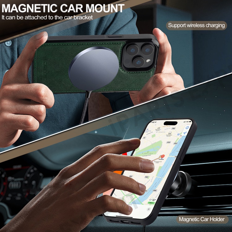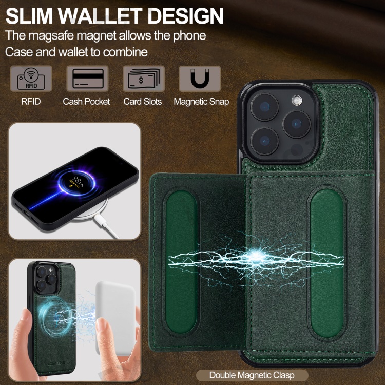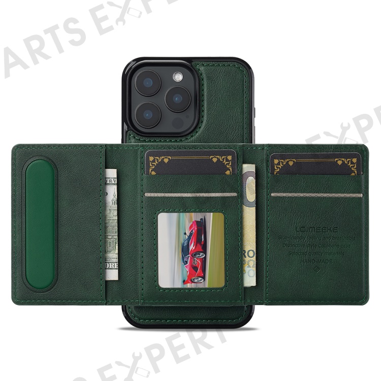 LC.IMEEKE L5 For iPhone 15 Pro Max Magnetic Phone Case Leather Back Cover with Detachable Card Holder - Green
