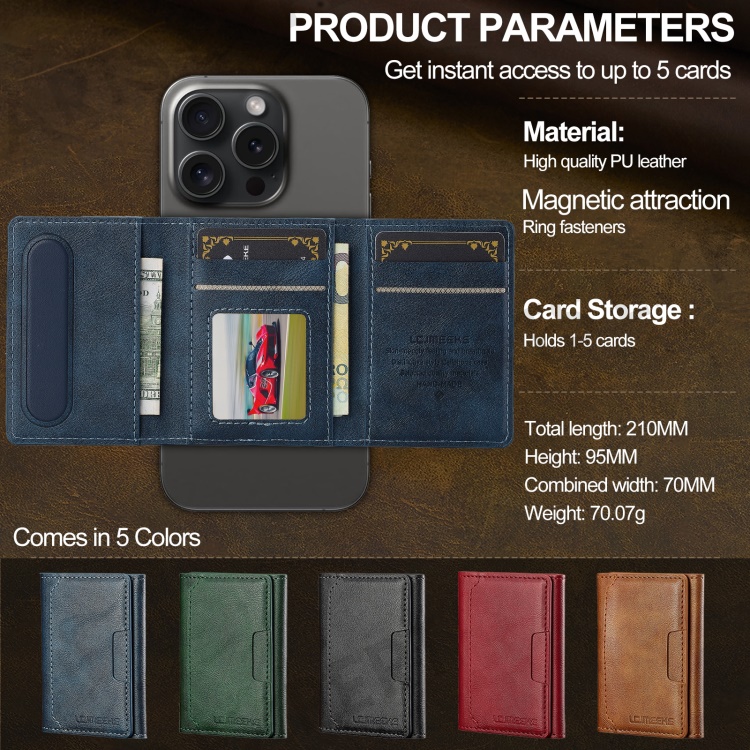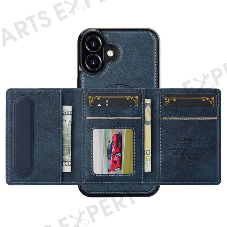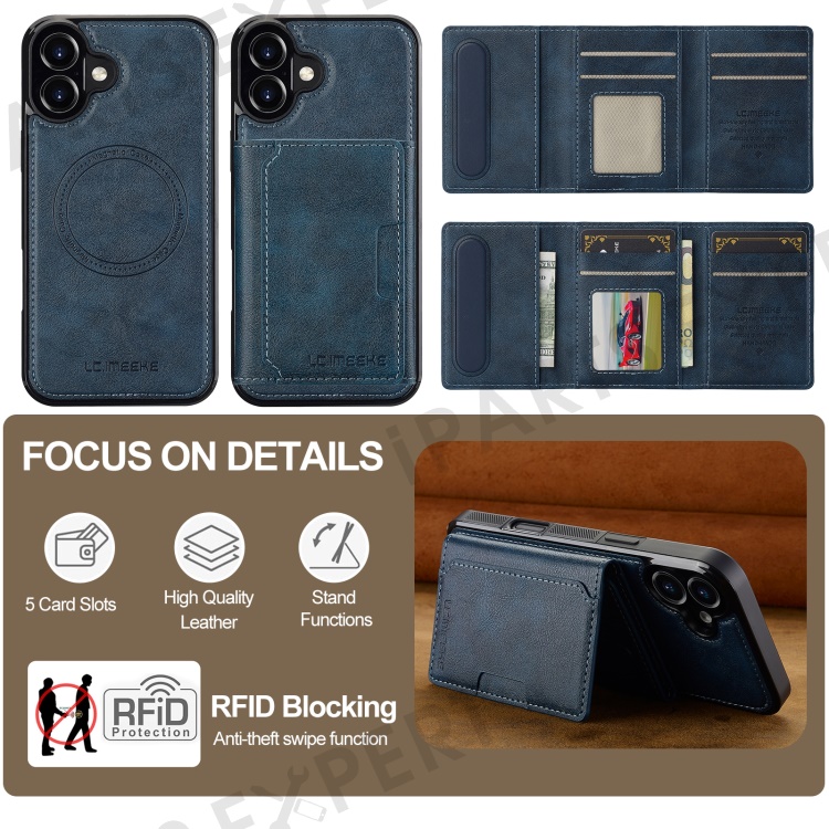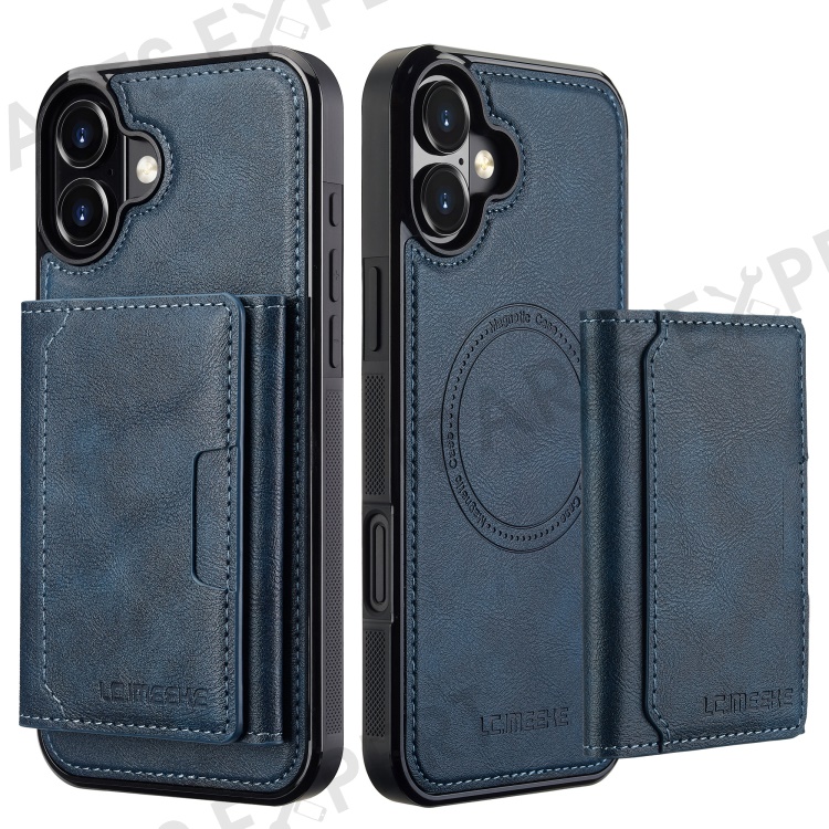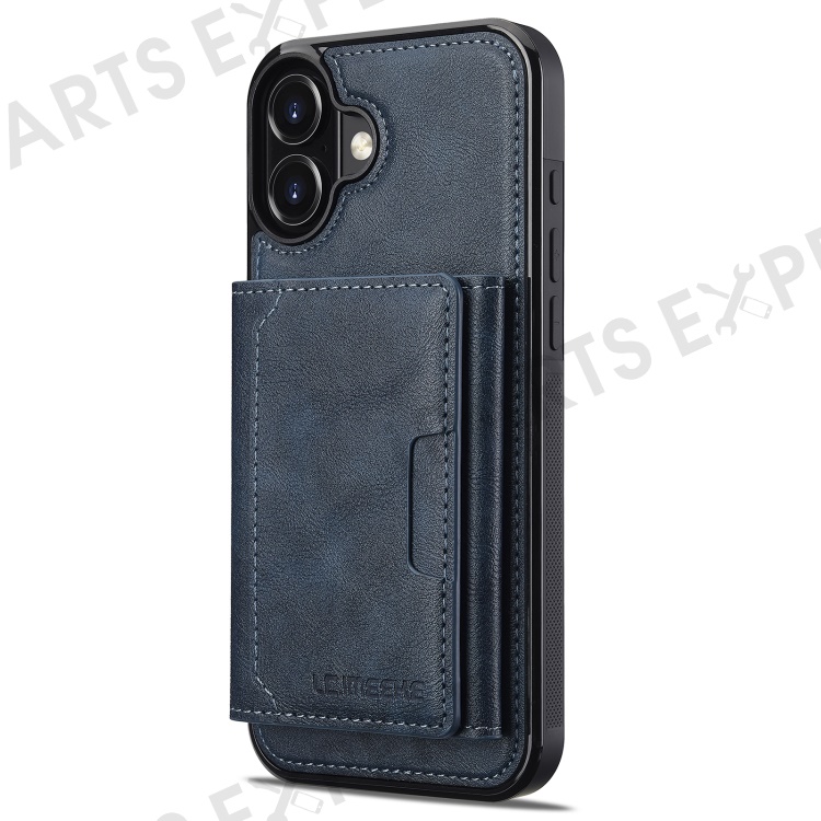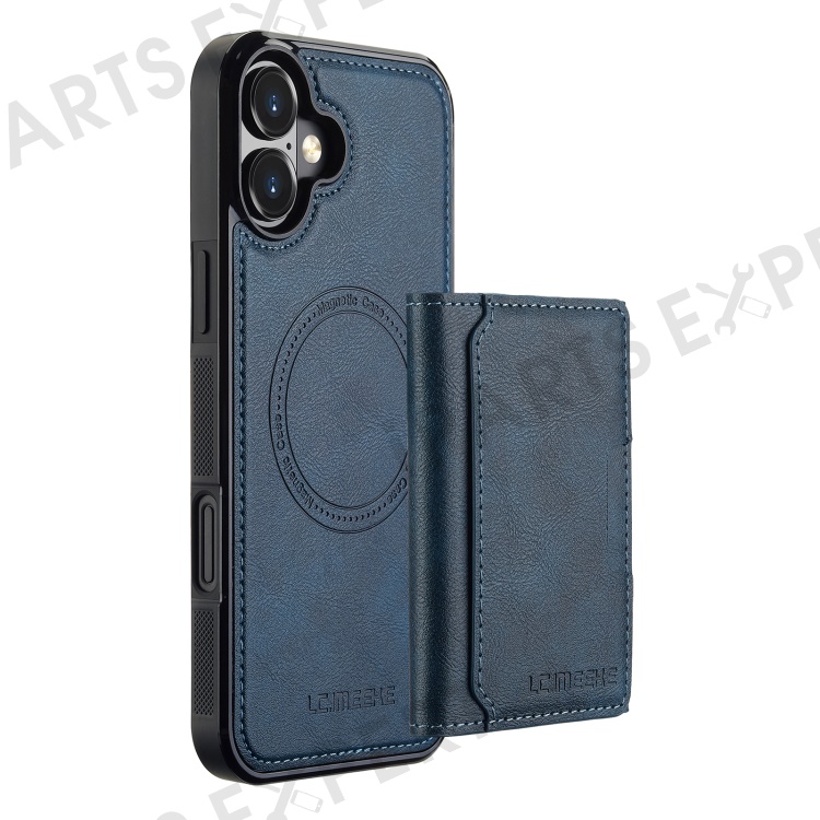 LC.IMEEKE L5 For iPhone 16 Magnetic Phone Case Leather Back Cover with Detachable Card Holder - Blue