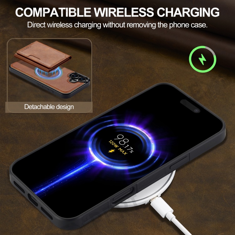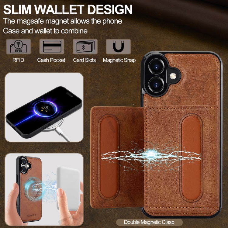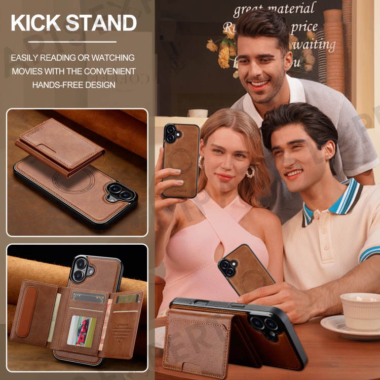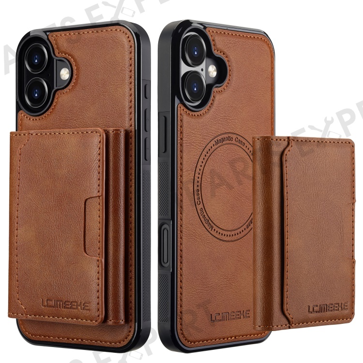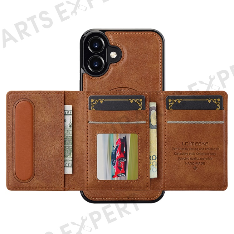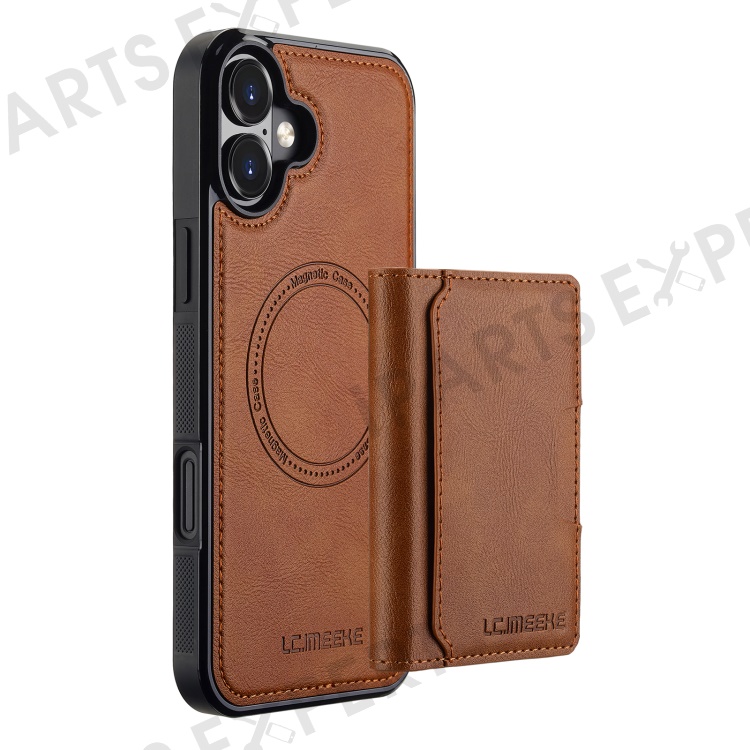 LC.IMEEKE L5 For iPhone 16 Magnetic Phone Case Leather Back Cover with Detachable Card Holder - Brown