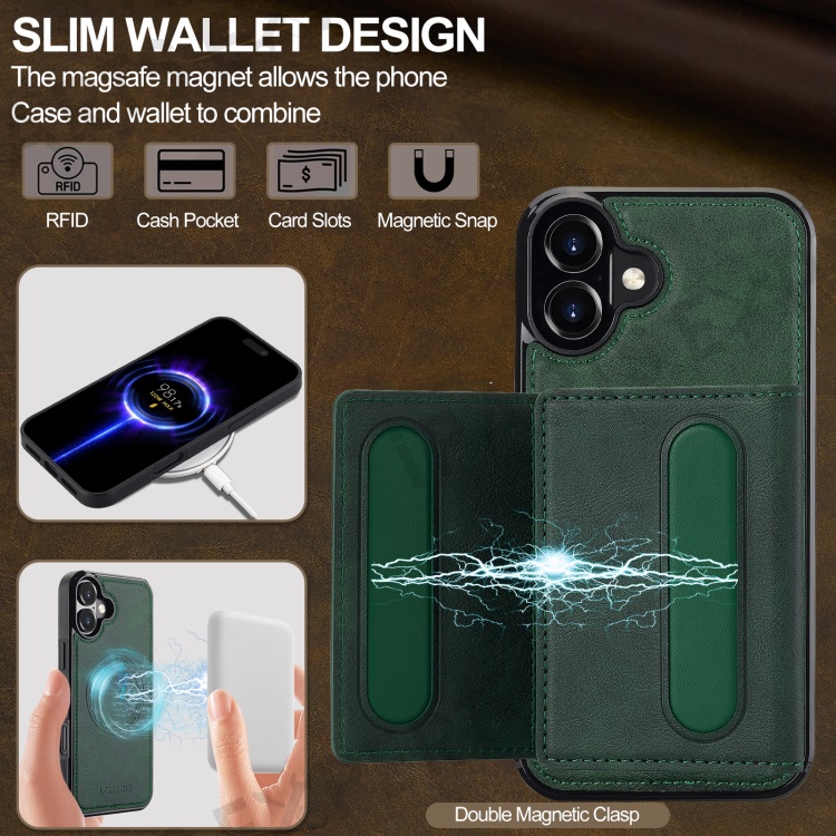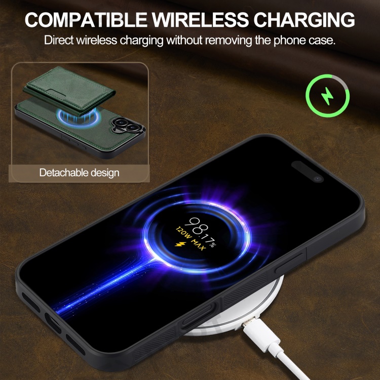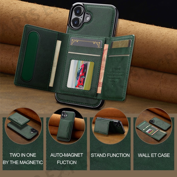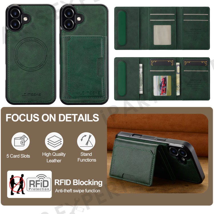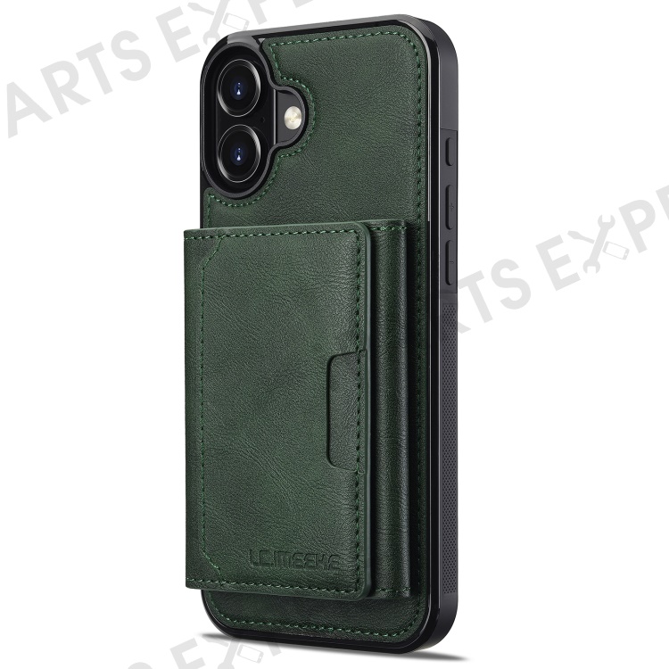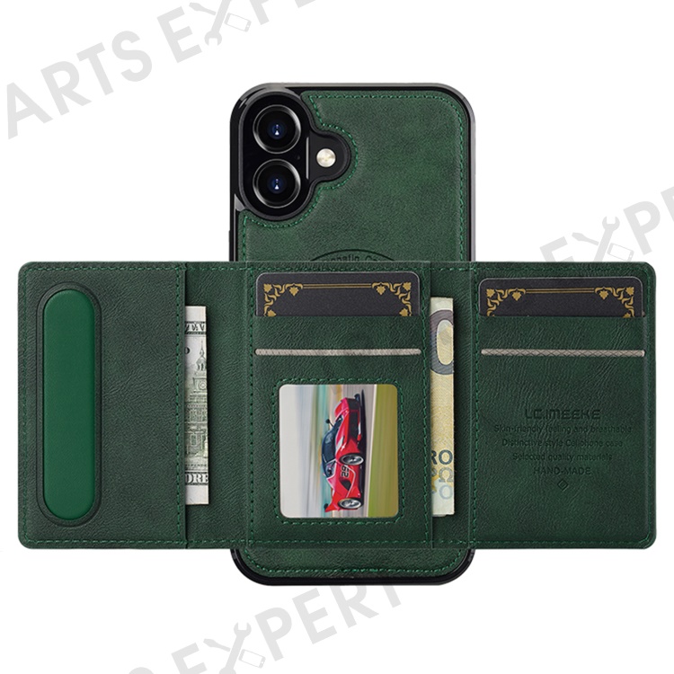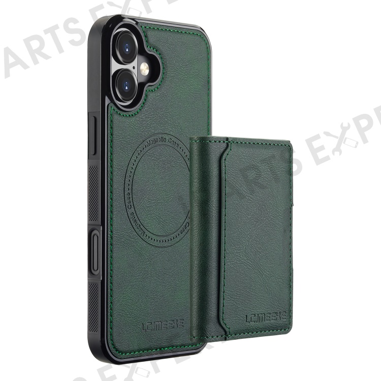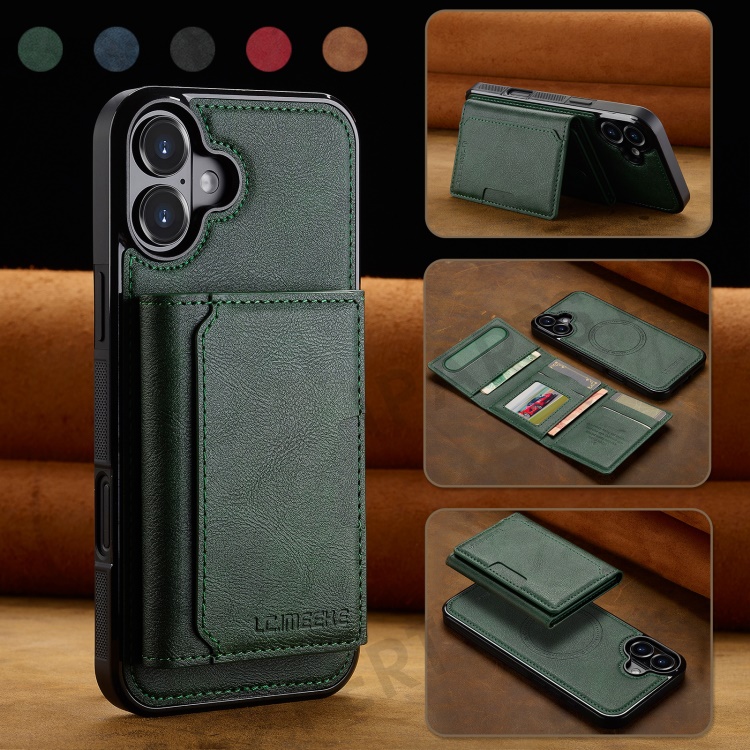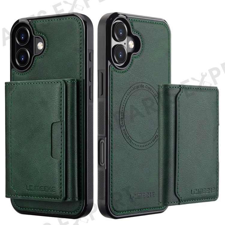 LC.IMEEKE L5 For iPhone 16 Magnetic Phone Case Leather Back Cover with Detachable Card Holder - Green