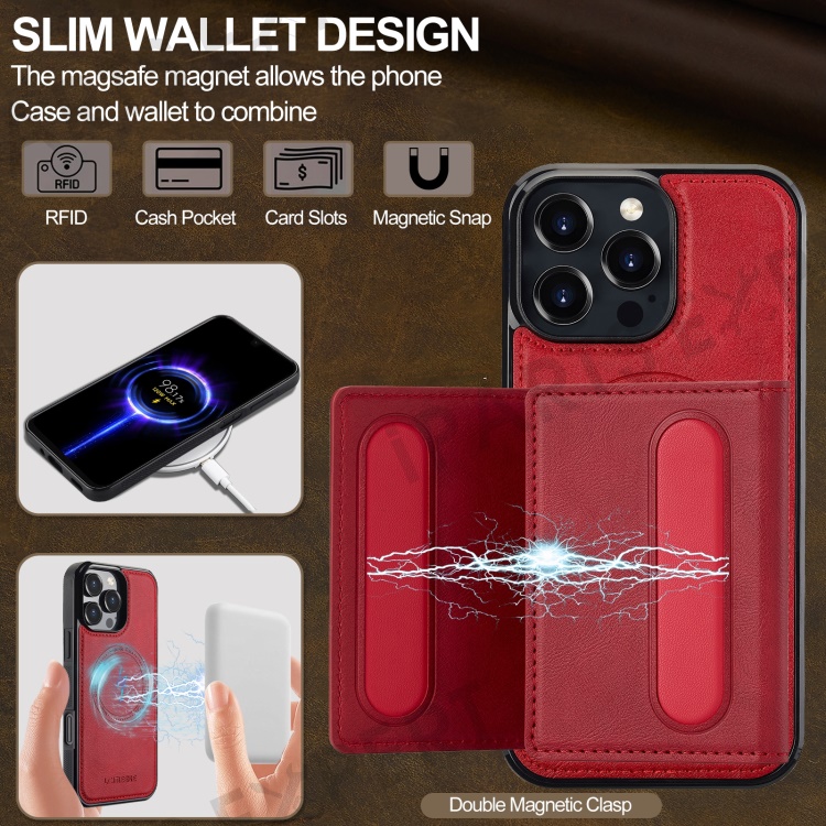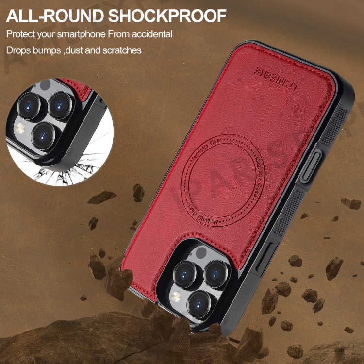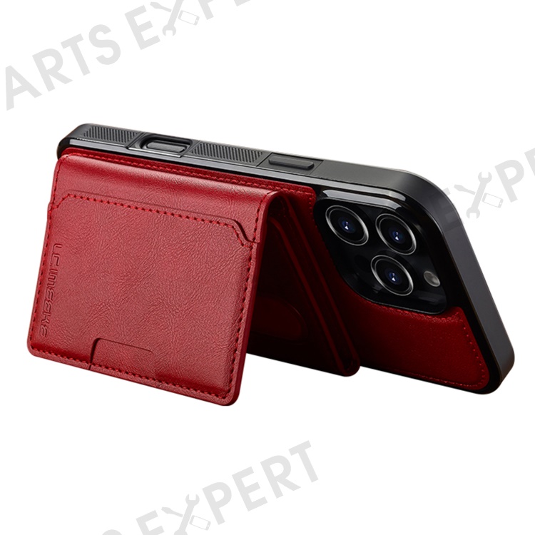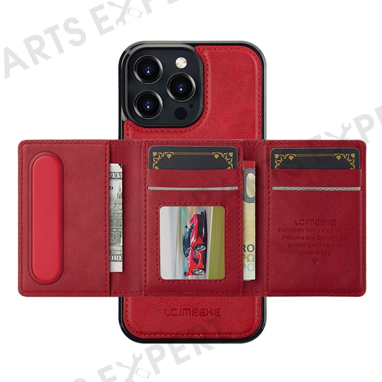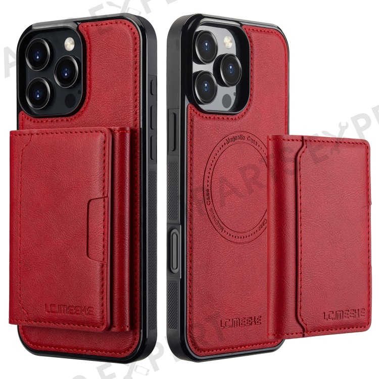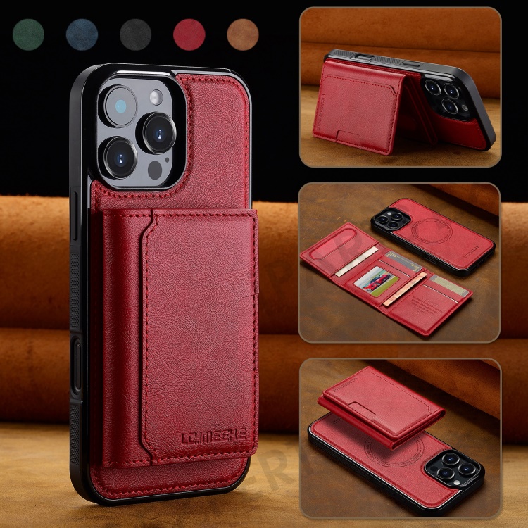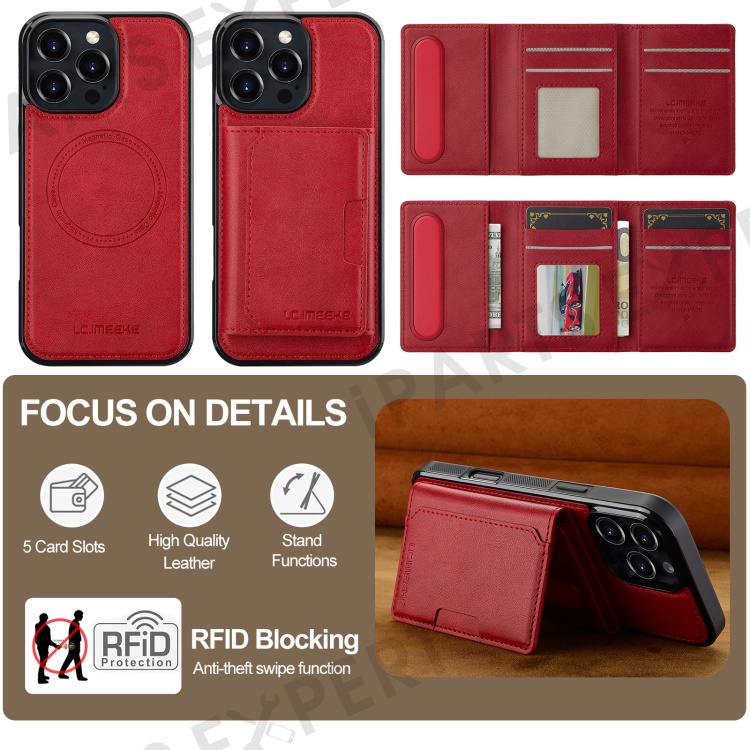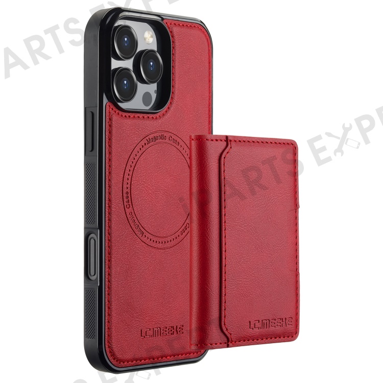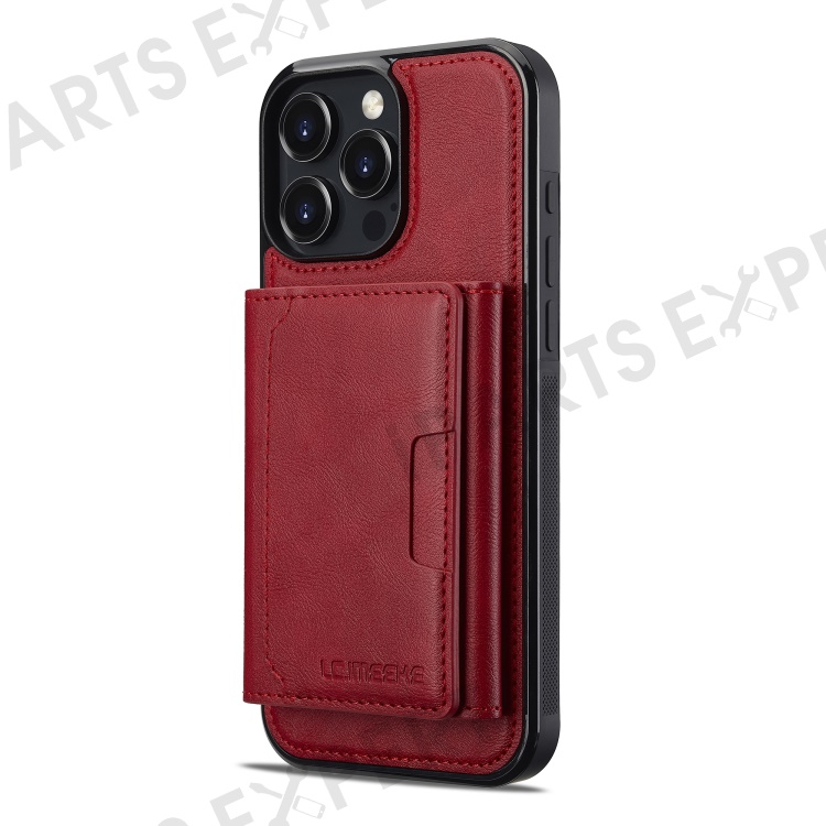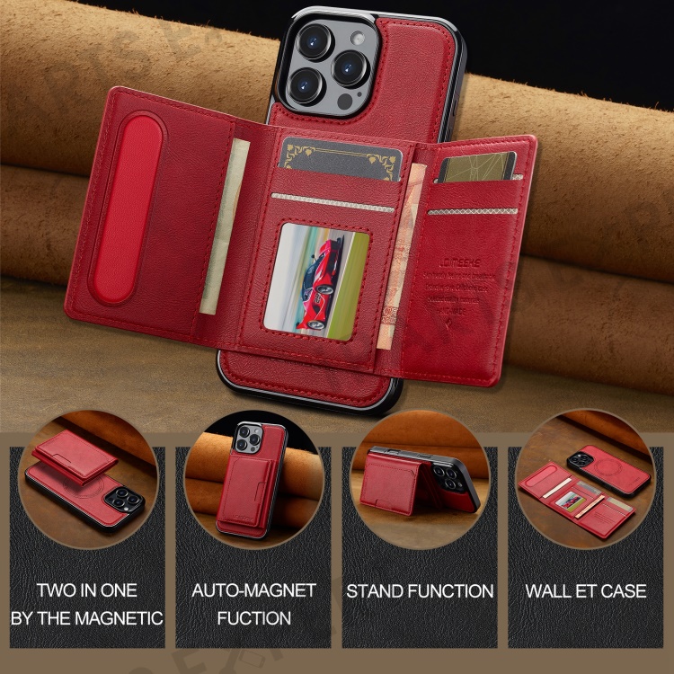 LC.IMEEKE L5 For iPhone 16 Pro Magnetic Phone Case Leather Back Cover with Detachable Card Holder - Red