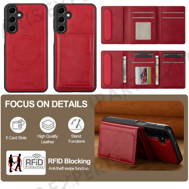 LC.IMEEKE L5 For Samsung Galaxy A15 4G / 5G Magnetic Phone Case Leather Back Cover with Detachable Card Holder - Red