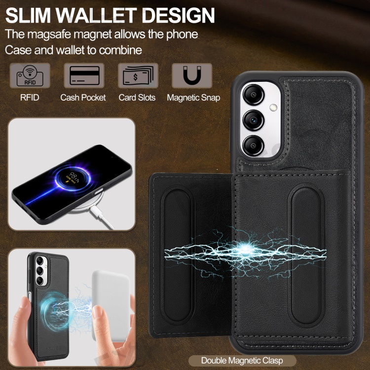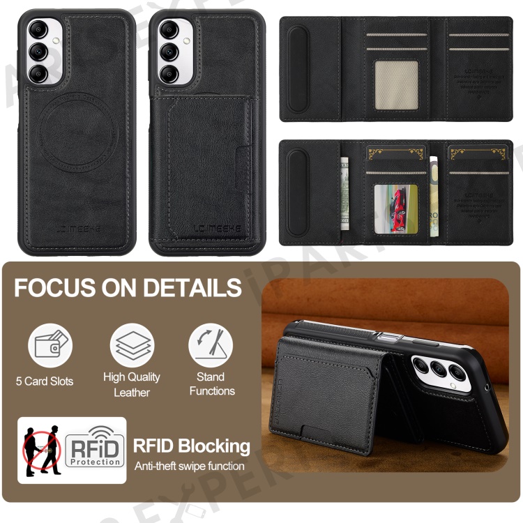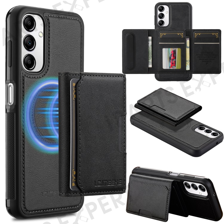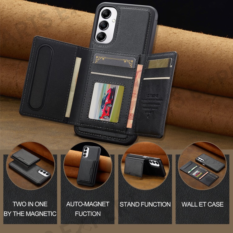 LC.IMEEKE L5 For Samsung Galaxy A34 5G Magnetic Phone Case Leather Back Cover with Detachable Card Holder - Black