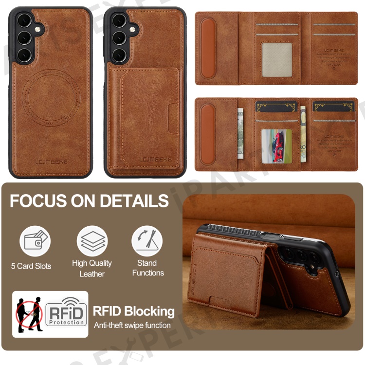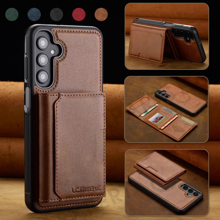LC.IMEEKE L5 For Samsung Galaxy S24 FE Magnetic Phone Case Leather Back Cover with Detachable Card Holder - Brown