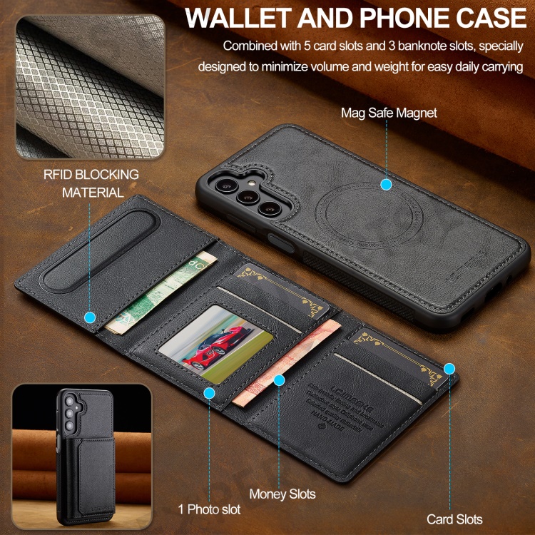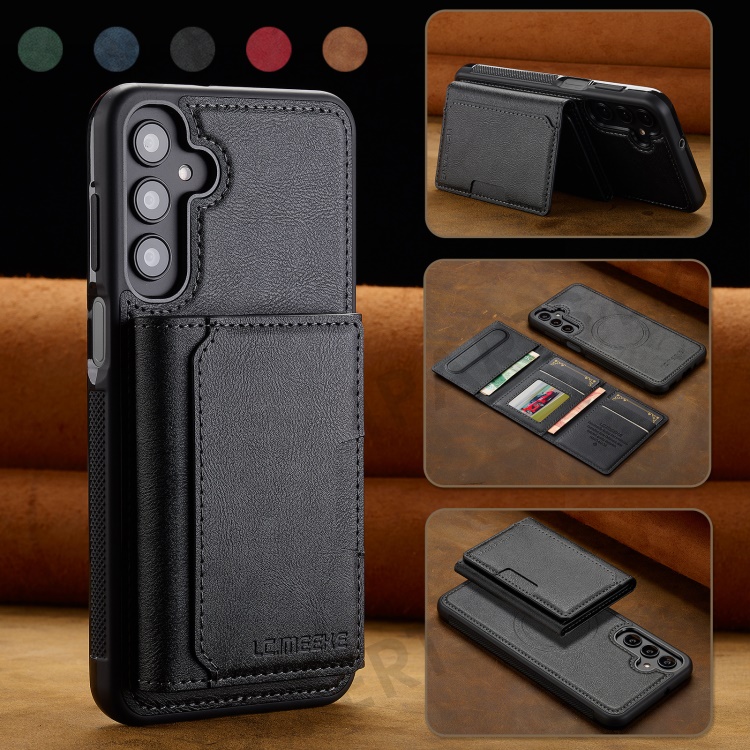 LC.IMEEKE L5 For Samsung Galaxy S24 Magnetic Phone Case Leather Back Cover with Detachable Card Holder - Black