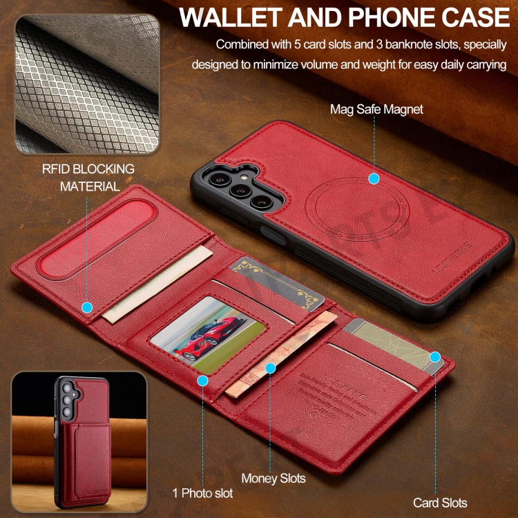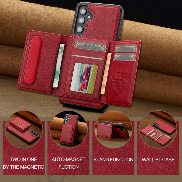 LC.IMEEKE L5 For Samsung Galaxy S24 Magnetic Phone Case Leather Back Cover with Detachable Card Holder - Red