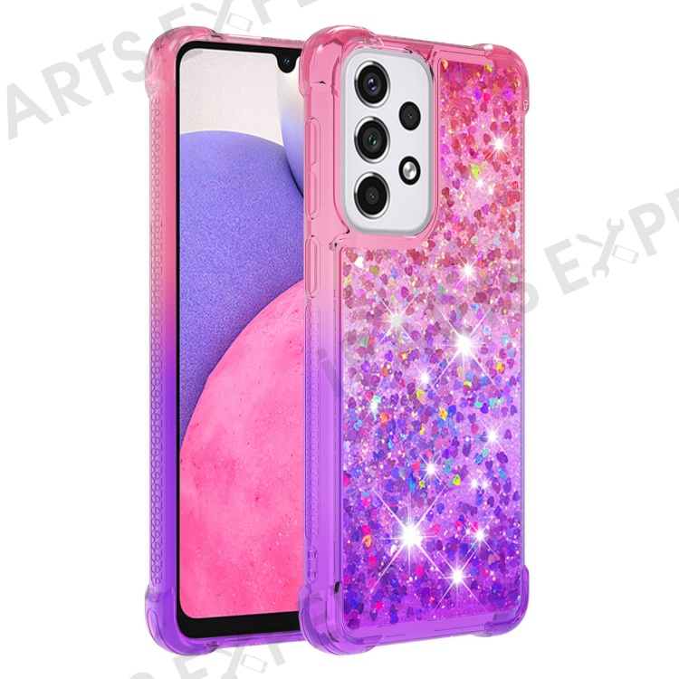 LE3 Series Gradient Glittering Sequins Quicksand TPU Cover Shell Dynamic Fun Phone Case for Samsung Galaxy A33 5G - Pink/Purple