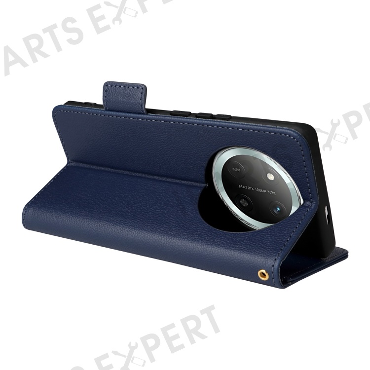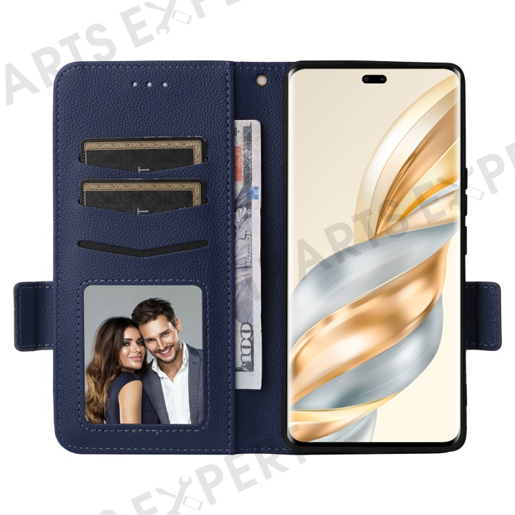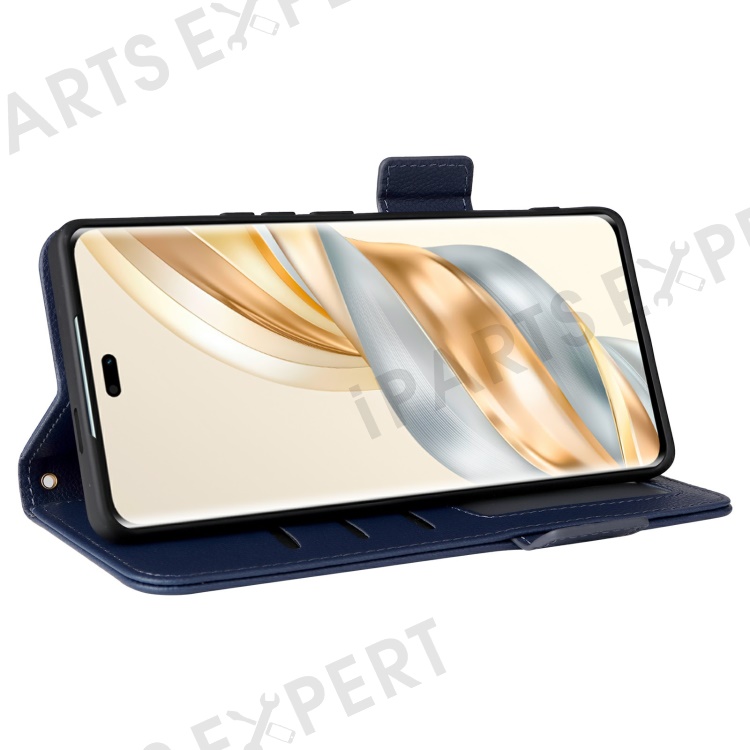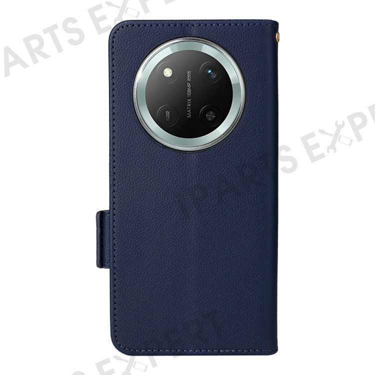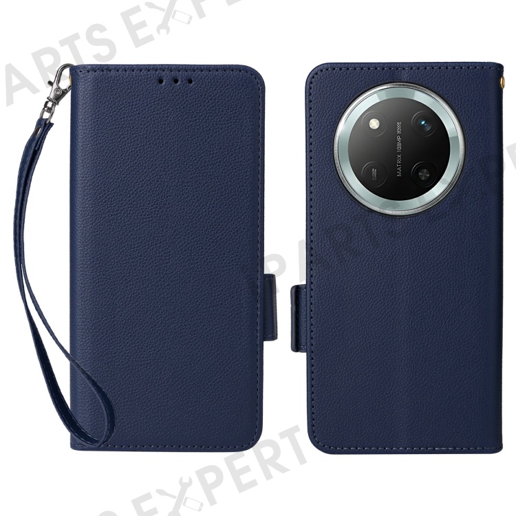 Leather Case with Wrist Strap for Honor X9c 5G / Magic7 Lite 5G / X60 Pro 5G Litchi Texture Wallet Phone Cover - Dark Blue
