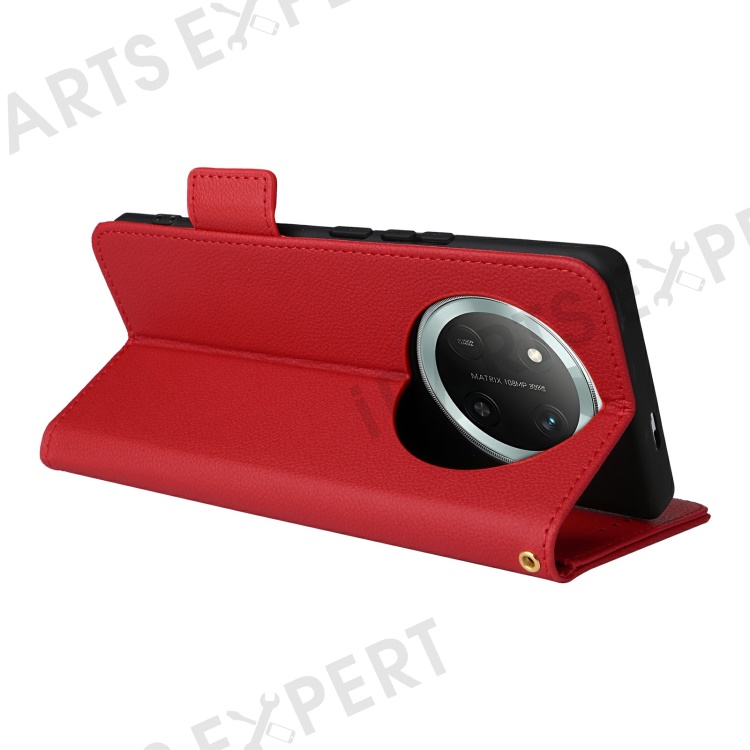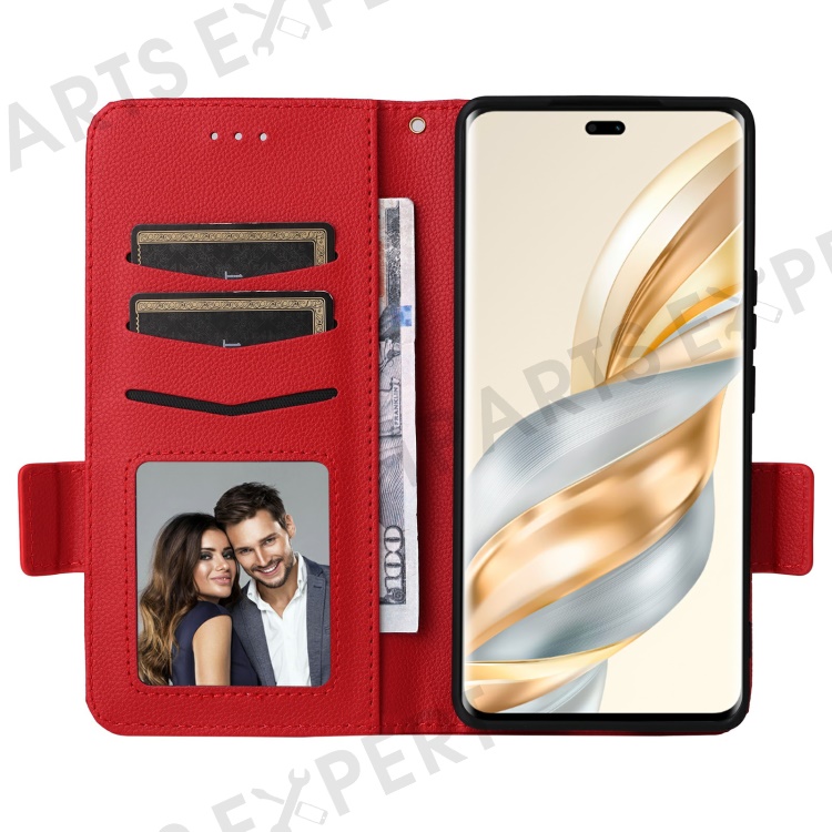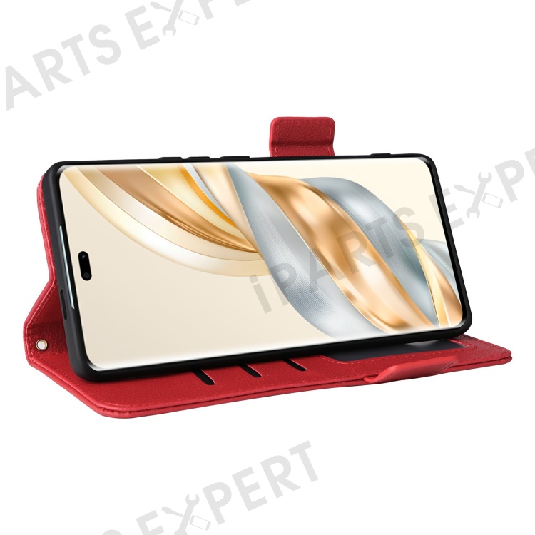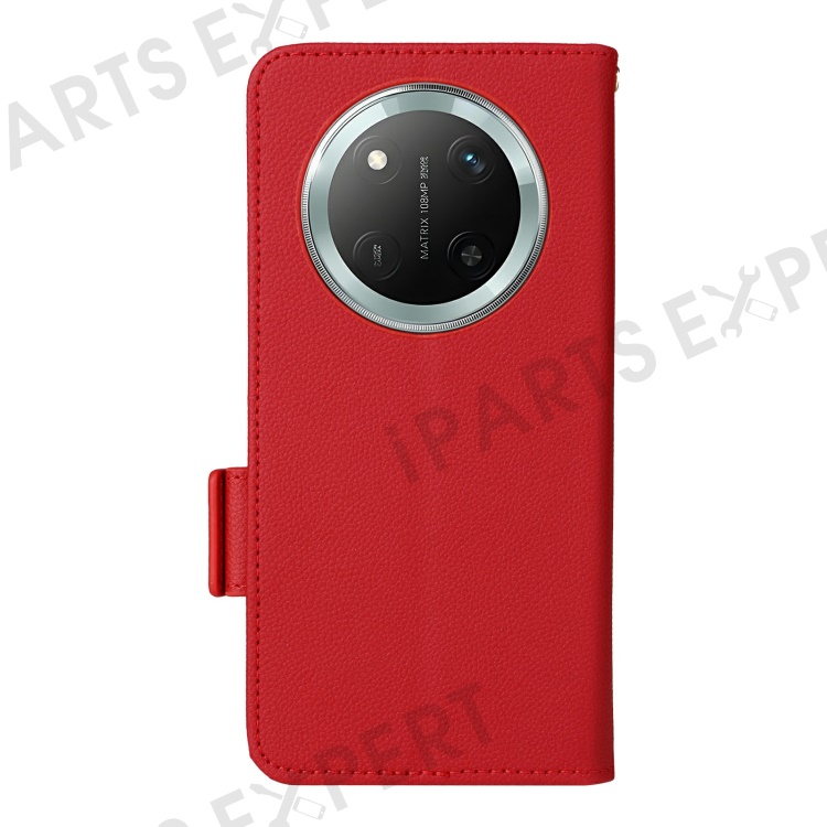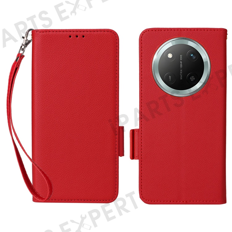 Leather Case with Wrist Strap for Honor X9c 5G / Magic7 Lite 5G / X60 Pro 5G Litchi Texture Wallet Phone Cover - Red