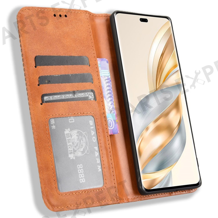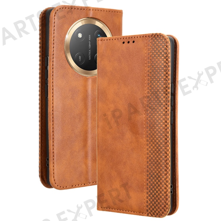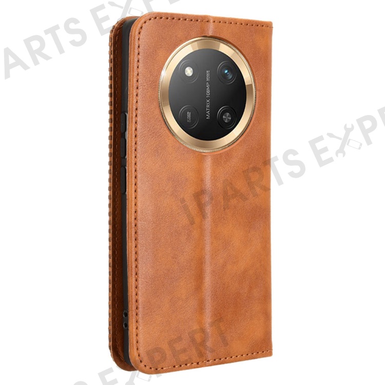 Leather Case for Honor X9c 5G / Magic7 Lite 5G / X60 Pro 5G Wallet Stand Retro Texture Phone Cover - Brown