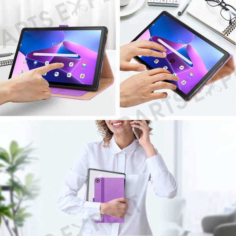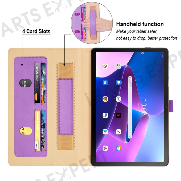 Leather Case for Lenovo Tab M10 Plus (3rd Gen) / Xiaoxin Pad 2022 10.6 inch, Business Style Card Slots PU Leather Stand Tablet Cover with Hand Strap - Purple