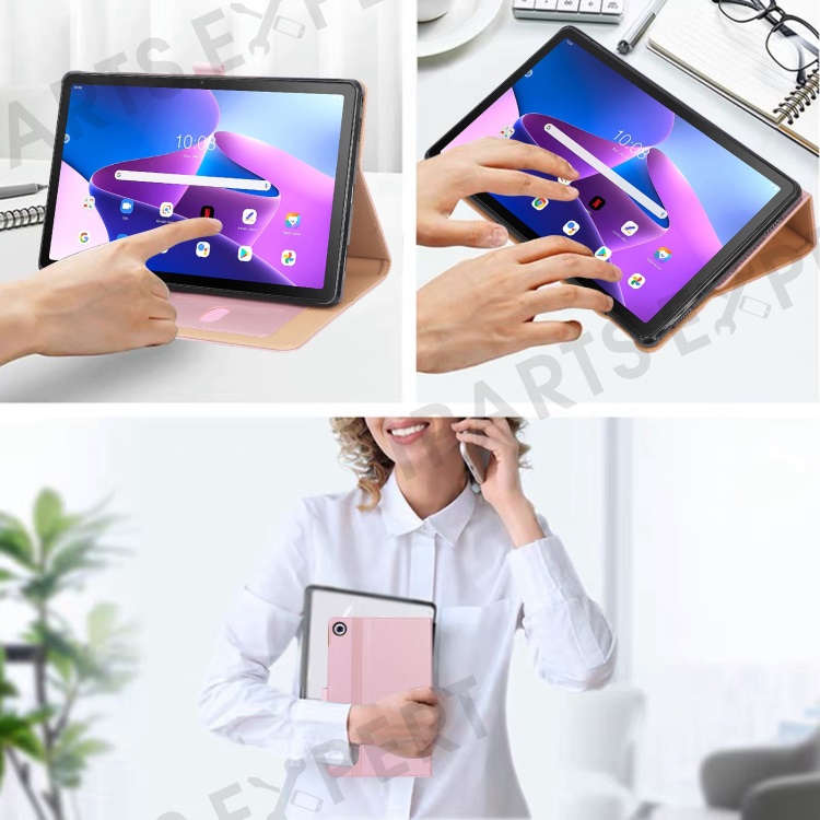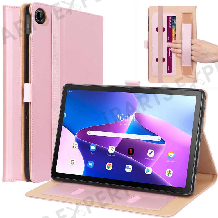 Leather Case for Lenovo Tab M10 Plus (3rd Gen) / Xiaoxin Pad 2022 10.6 inch, Business Style Card Slots PU Leather Stand Tablet Cover with Hand Strap - Rose Gold