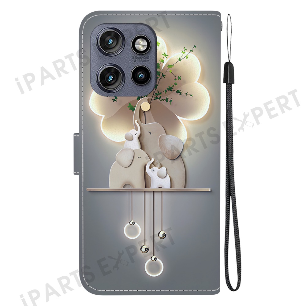Leather Case For Motorola Edge 60 Neo 5G / Edge 50 Neo 5G / Moto S50 5G / ThinkPhone 25 5G Pattern Printing Flip Wallet Phone Cover with Lanyard - Three Elephants