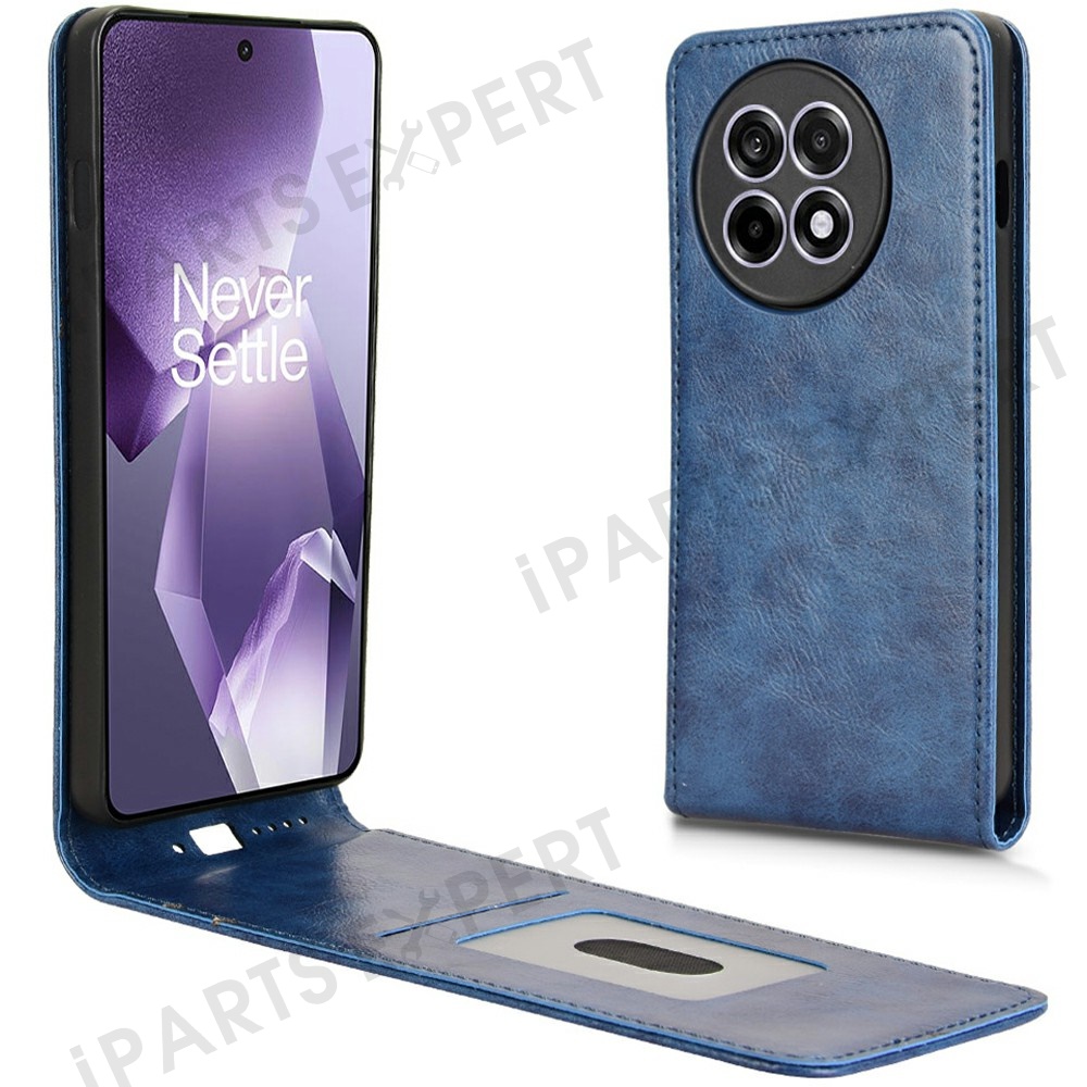 Leather Case For OnePlus 13R 5G / Ace 5 5G / Ace 5 Pro 5G Magnetic Vertical Flip Phone Cover with Card Slot - Dark Blue