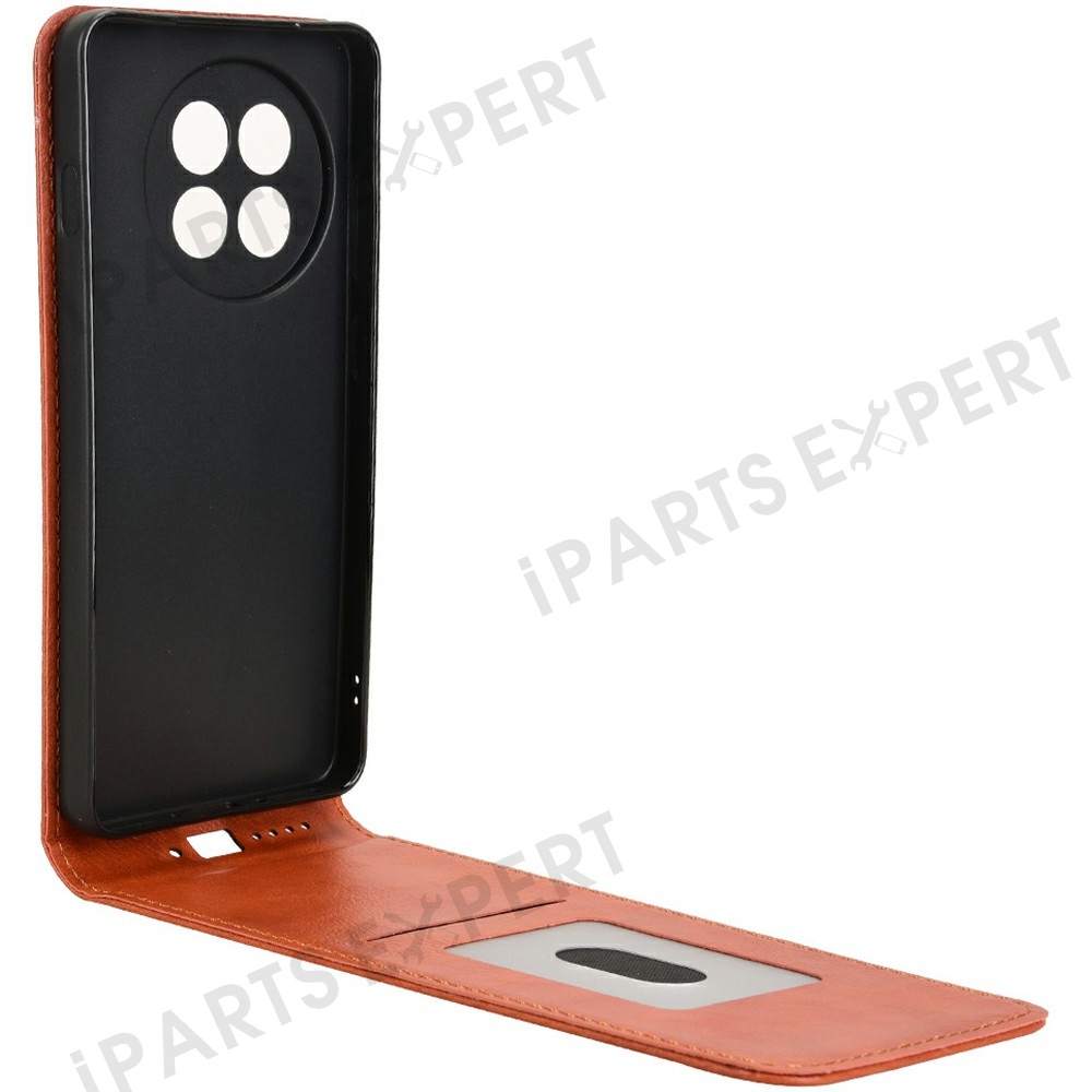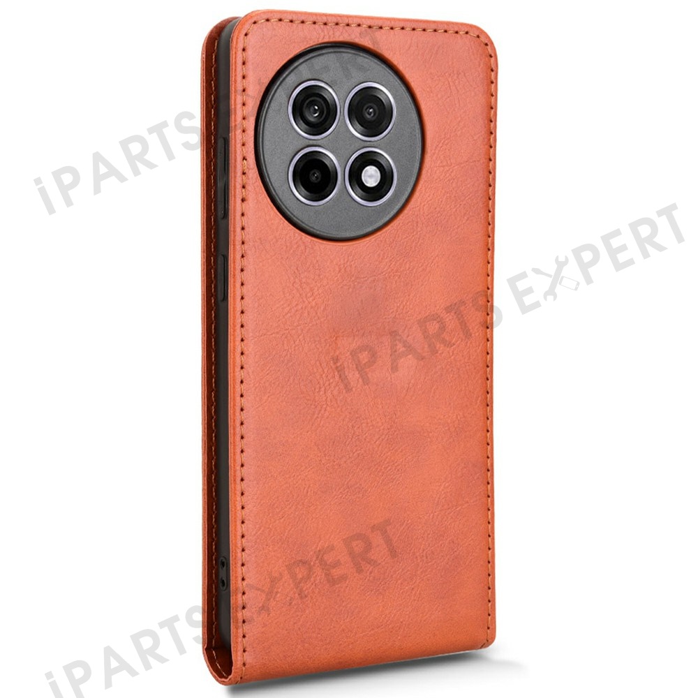 Leather Case For OnePlus 13R 5G / Ace 5 5G / Ace 5 Pro 5G Magnetic Vertical Flip Phone Cover with Card Slot - Orange