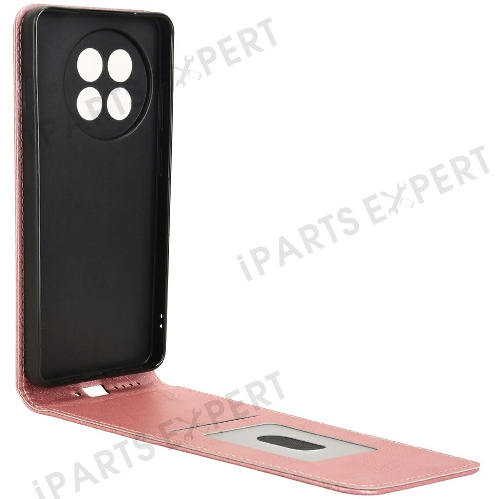 Leather Case For OnePlus 13R 5G / Ace 5 5G / Ace 5 Pro 5G Magnetic Vertical Flip Phone Cover with Card Slot - Rose Gold