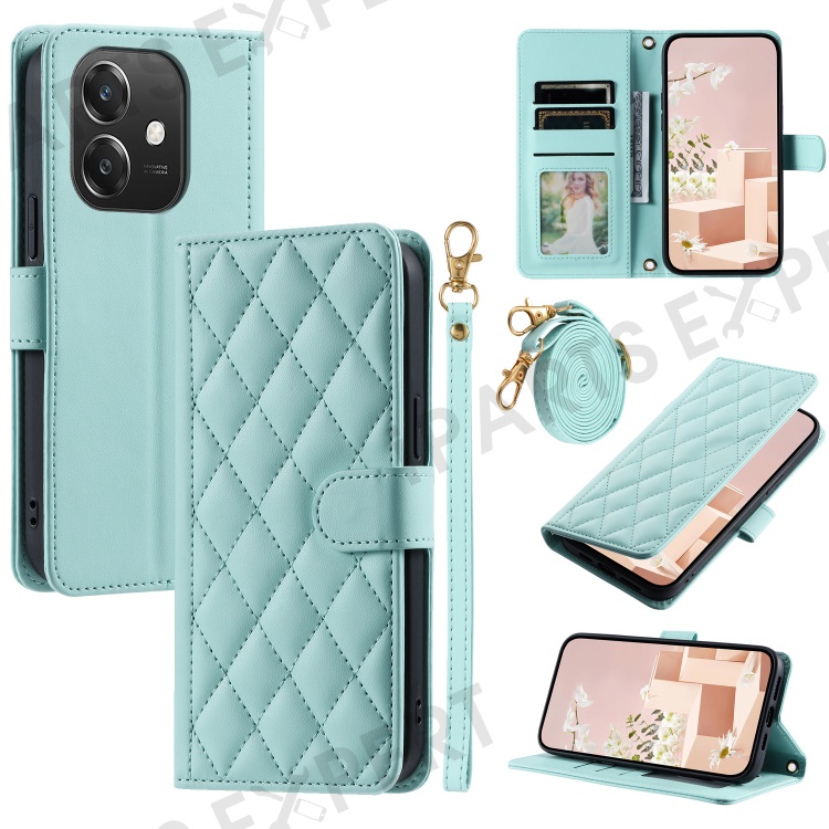 Leather Case for Oppo A3x 4G / 5G (India) / A3 4G / 5G / A40 4G / A60 5G Wallet Rhombus Grid Phone Cover - Mint Green